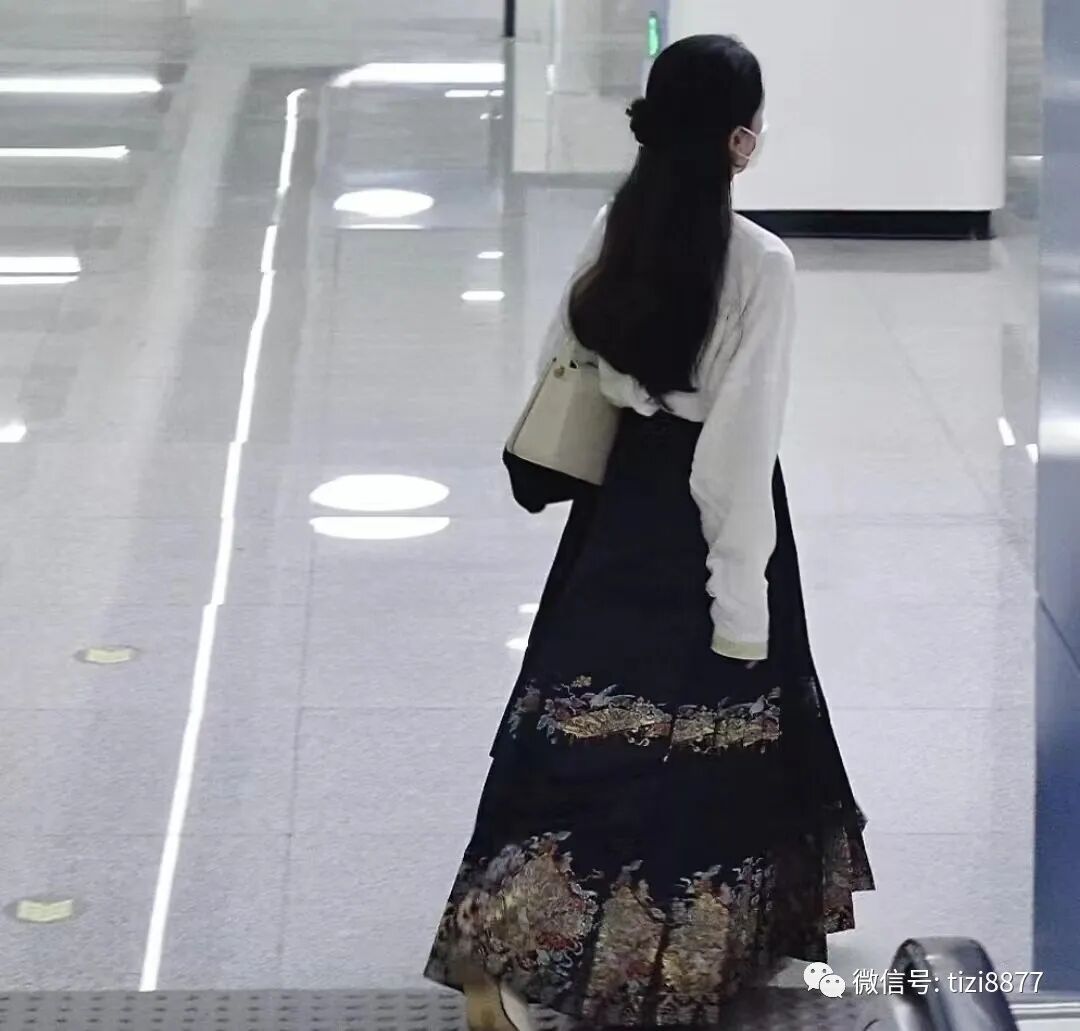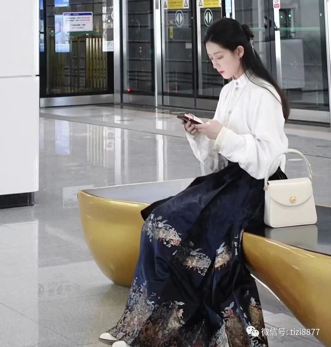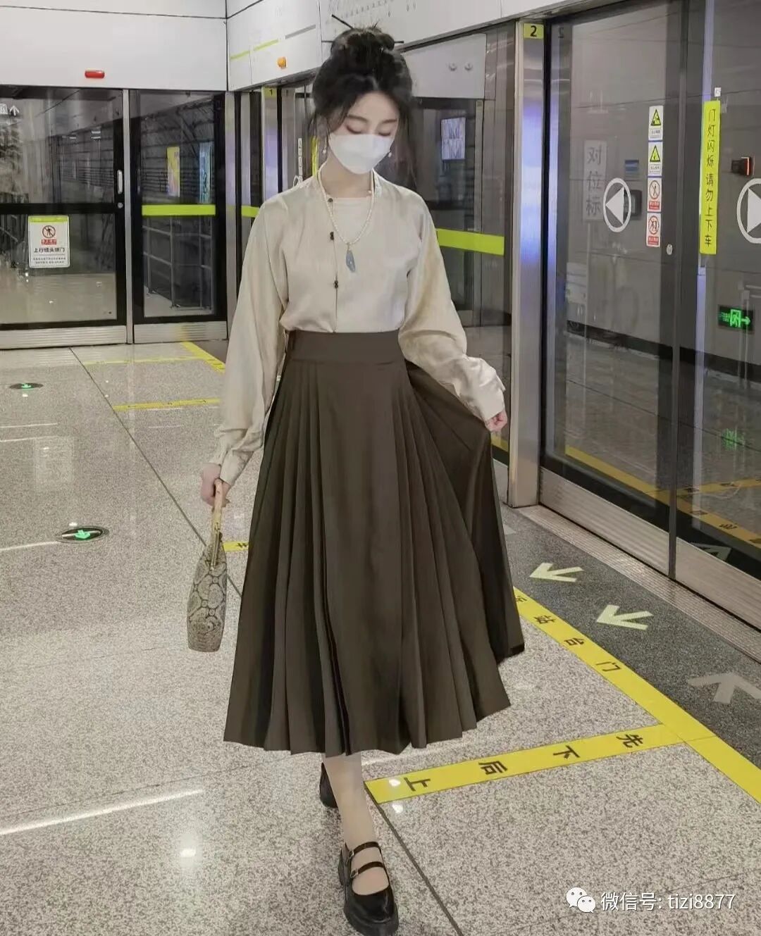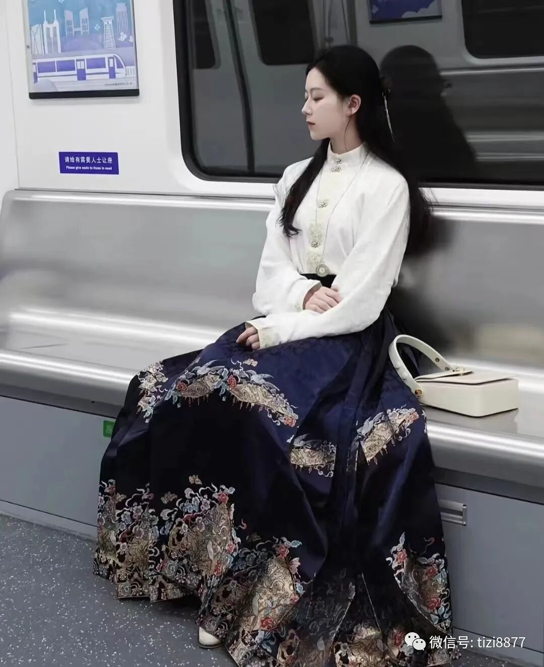 地鐵上穿馬面裙的女子!生活中穿馬面裙真的很日常,除了上樓梯要提一下裙擺,沒(méi)有什么麻煩。春夏到了,就可以搭配各種襯衫,交領(lǐng)、立領(lǐng)、襯衫領(lǐng)都沒(méi)問(wèn)題。