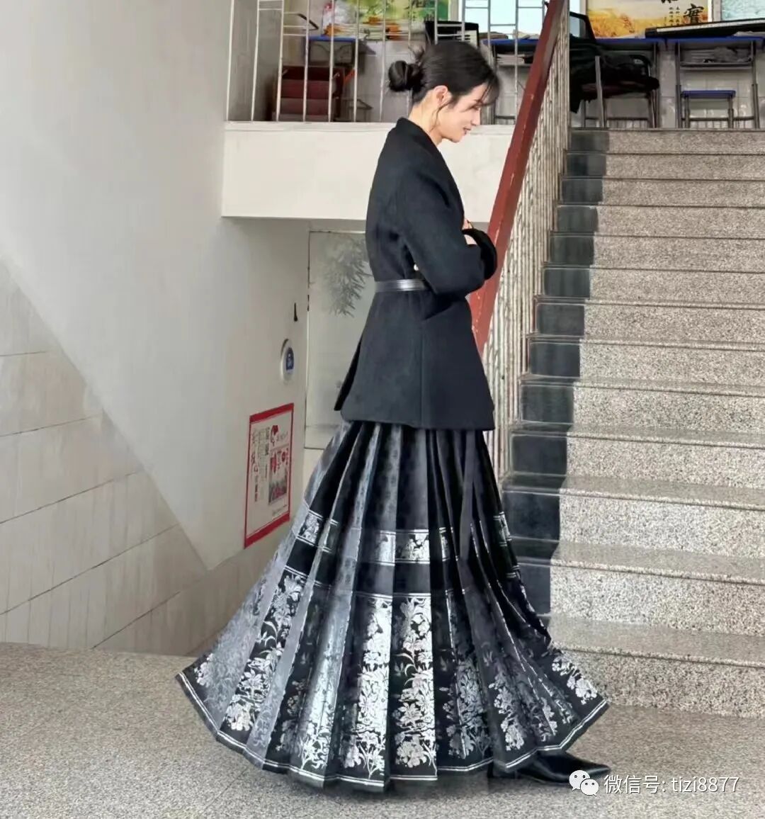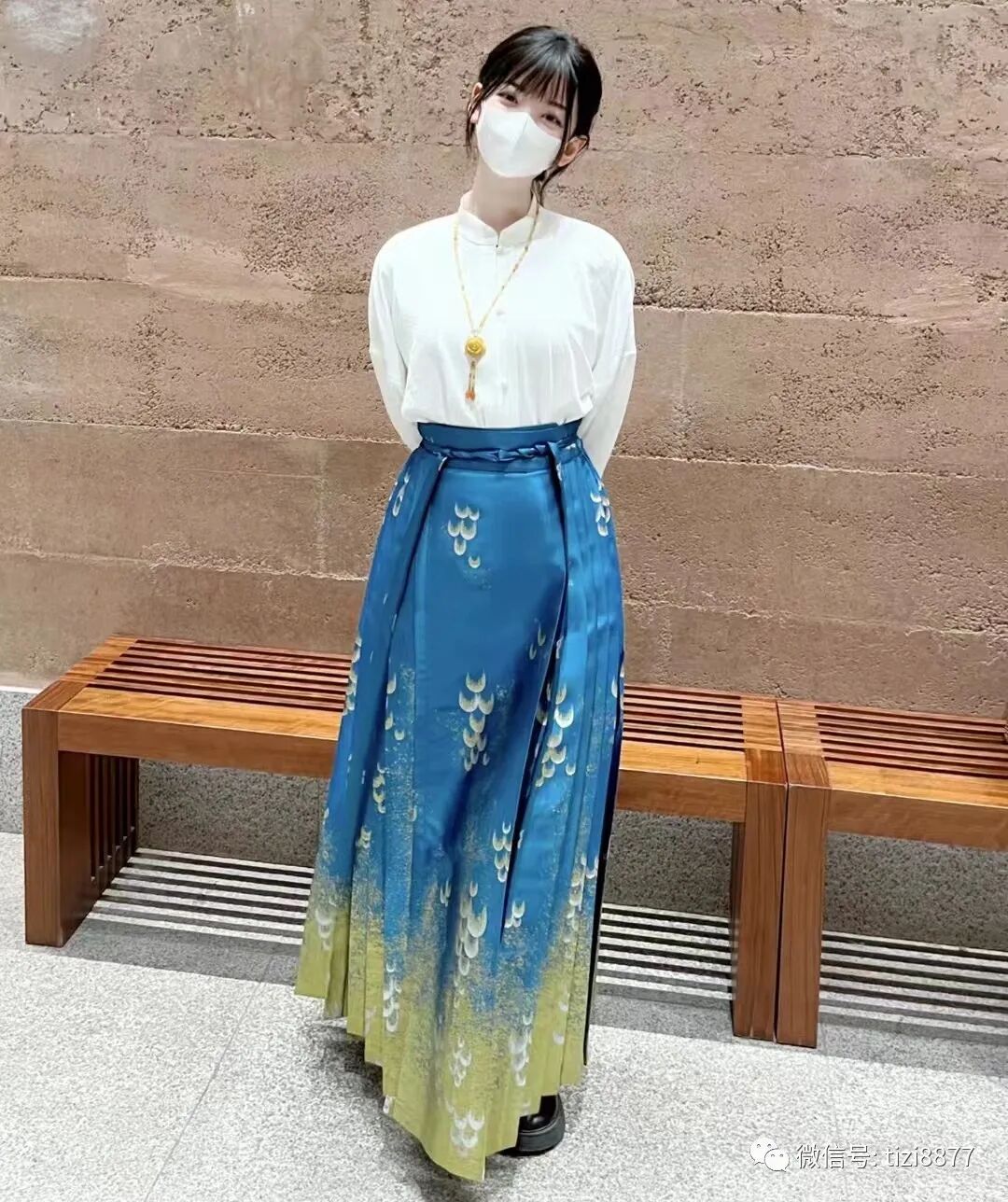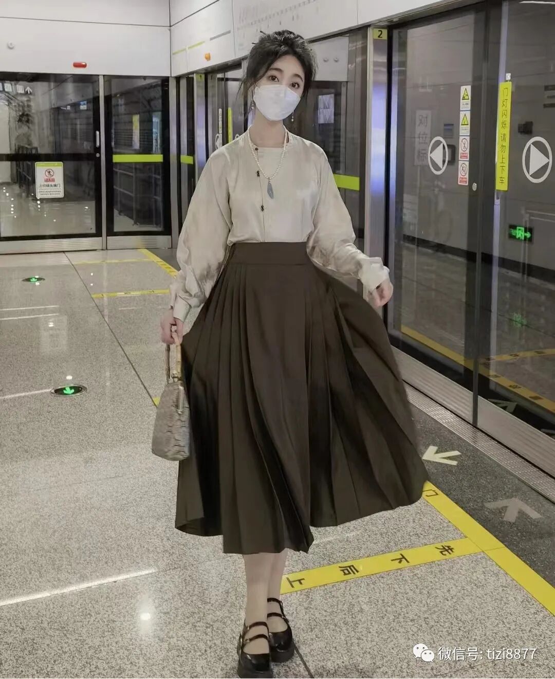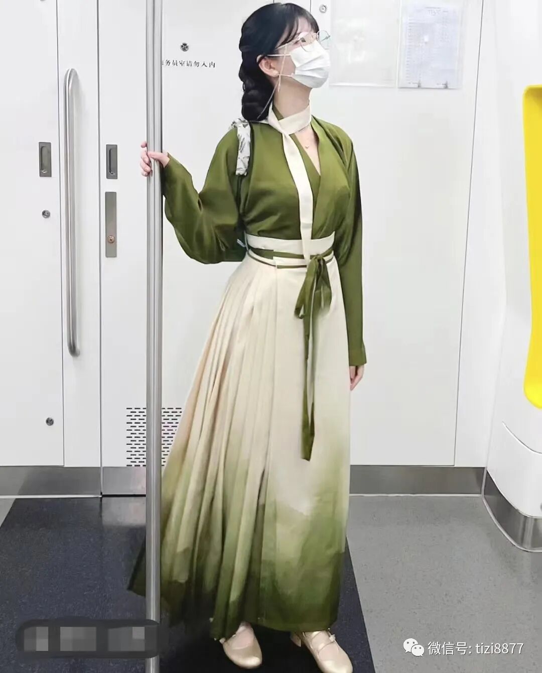 地鐵上穿馬面裙的女子!生活中穿馬面裙真的很日常,除了上樓梯要提一下裙擺,沒(méi)有什么麻煩。春夏到了,就可以搭配各種襯衫,交領(lǐng)、立領(lǐng)、襯衫領(lǐng)都沒(méi)問(wèn)題。