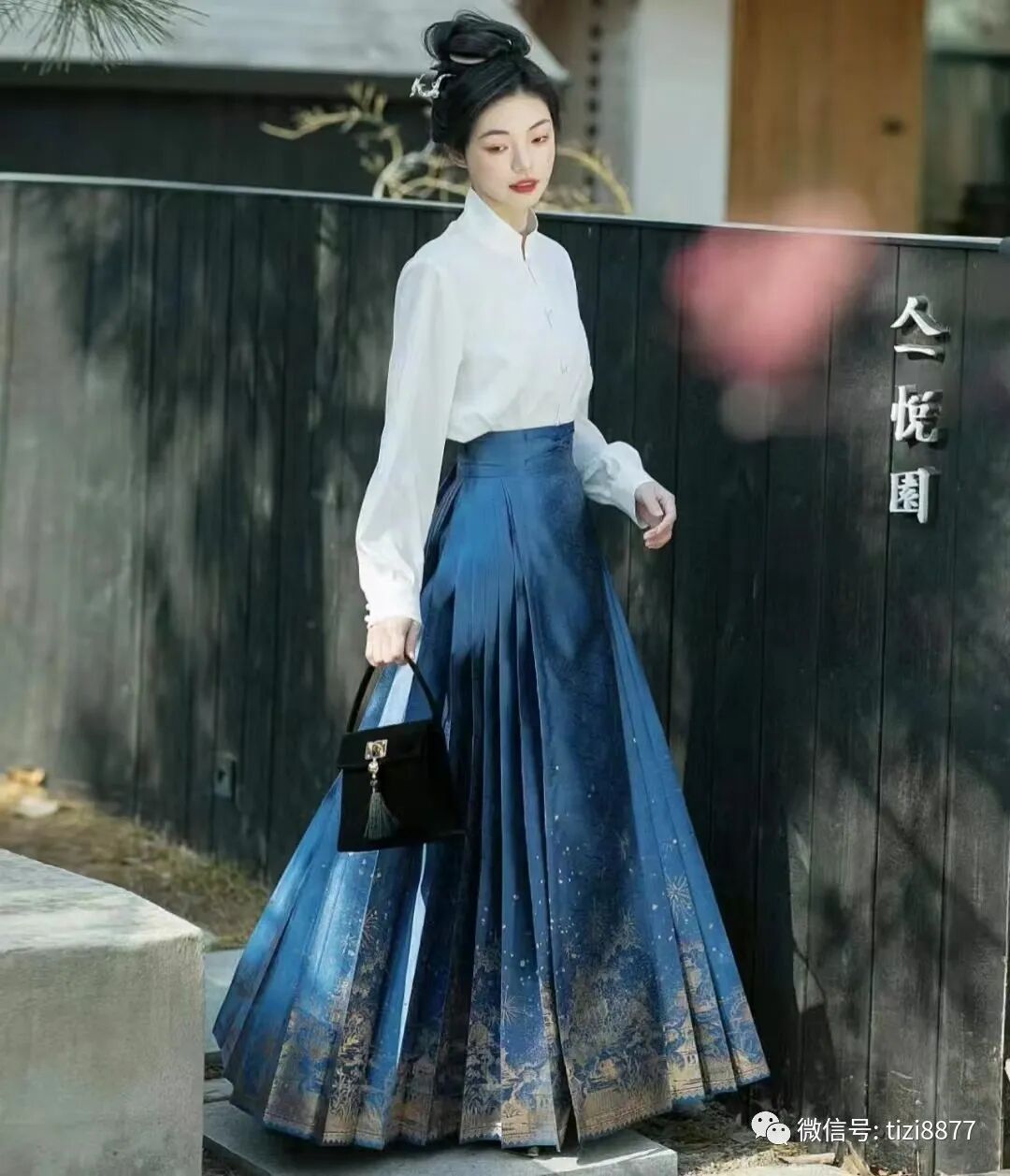 近幾年大火的馬面裙就成了時(shí)尚女人的新選擇。喜歡華麗感的姐妹,可以選擇亮色馬面裙,配件暗色系上衣,一亮一暗的搭配方式,顯得時(shí)尚又氣質(zhì)。接下來(lái)就來(lái)學(xué)習(xí)一組時(shí)尚穿搭博主的馬面裙穿搭示范合集吧。