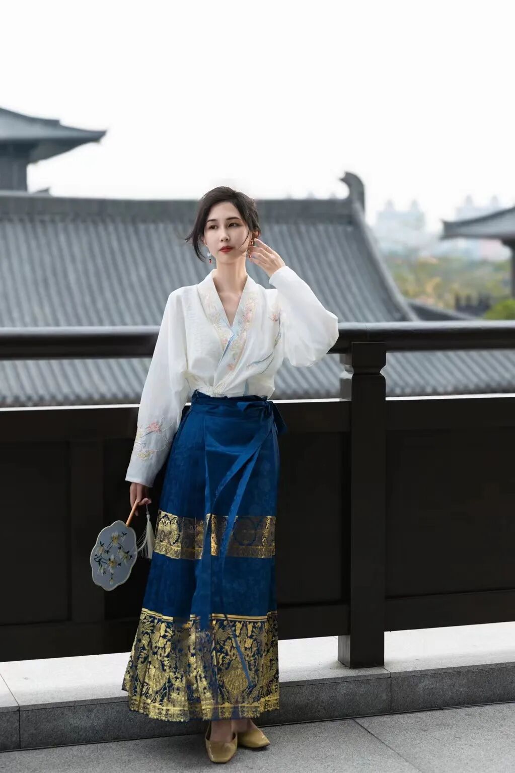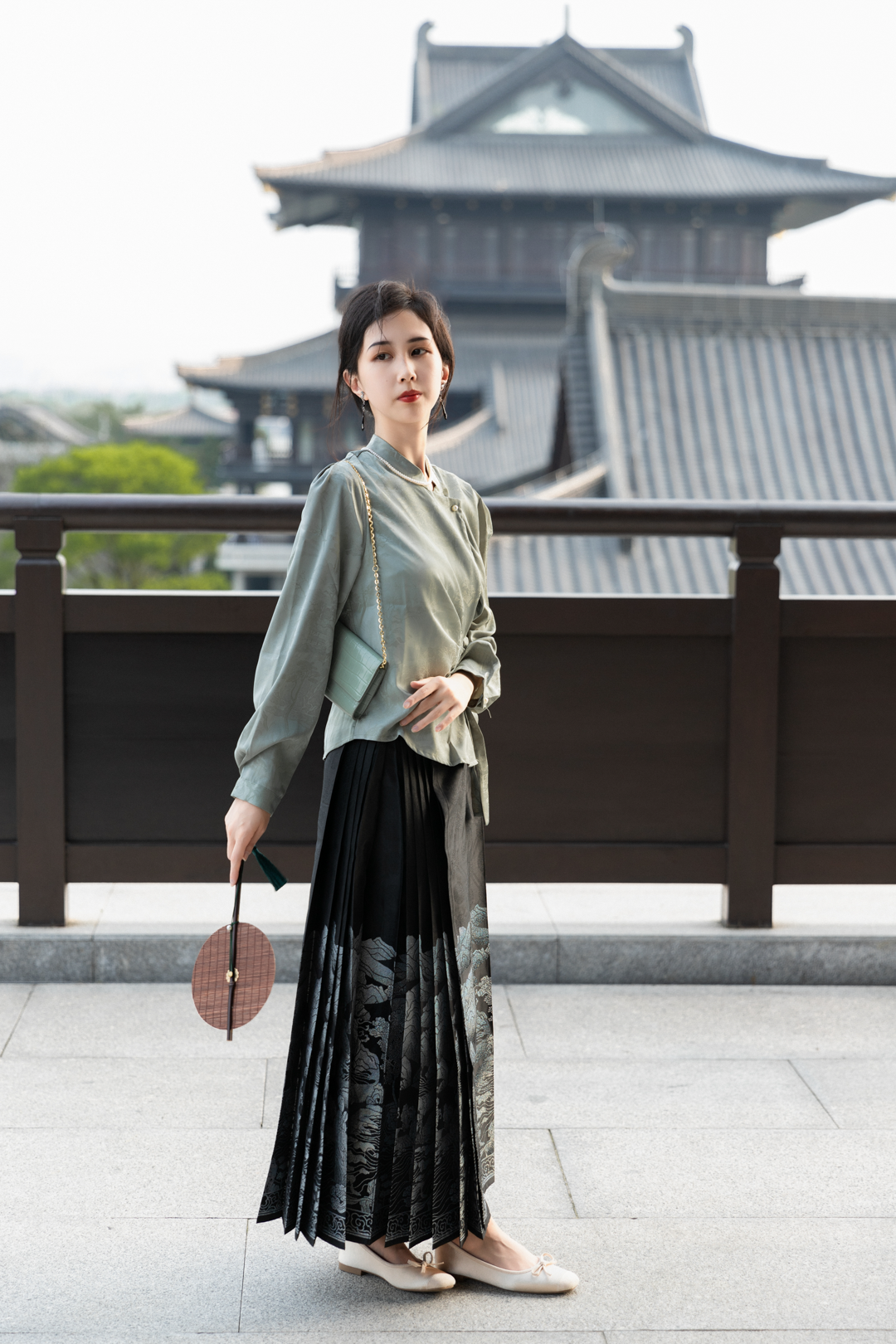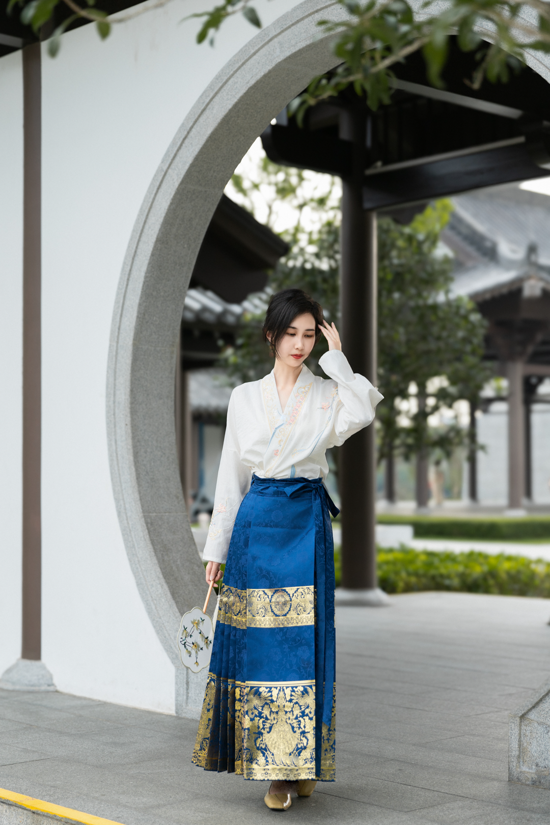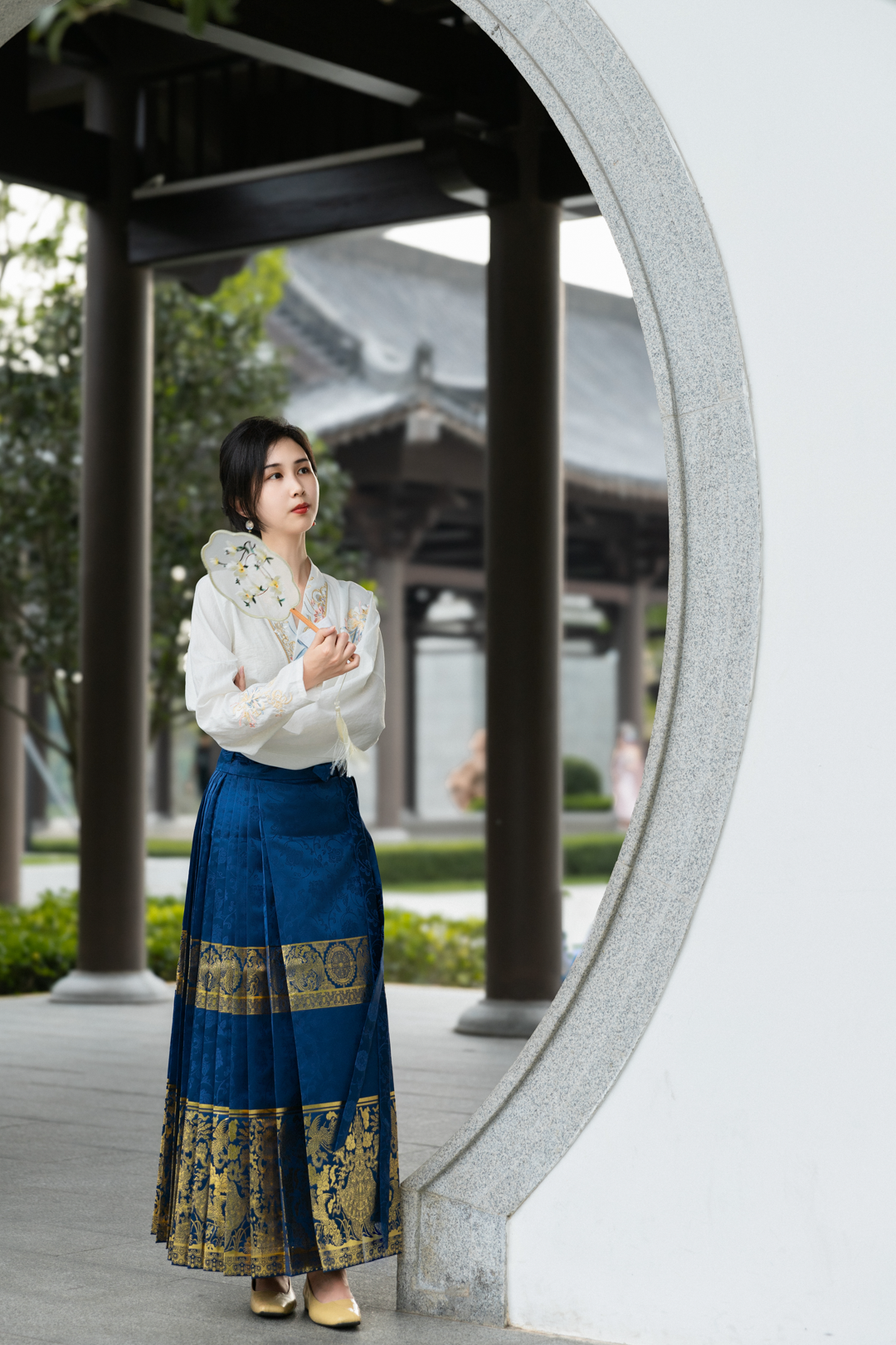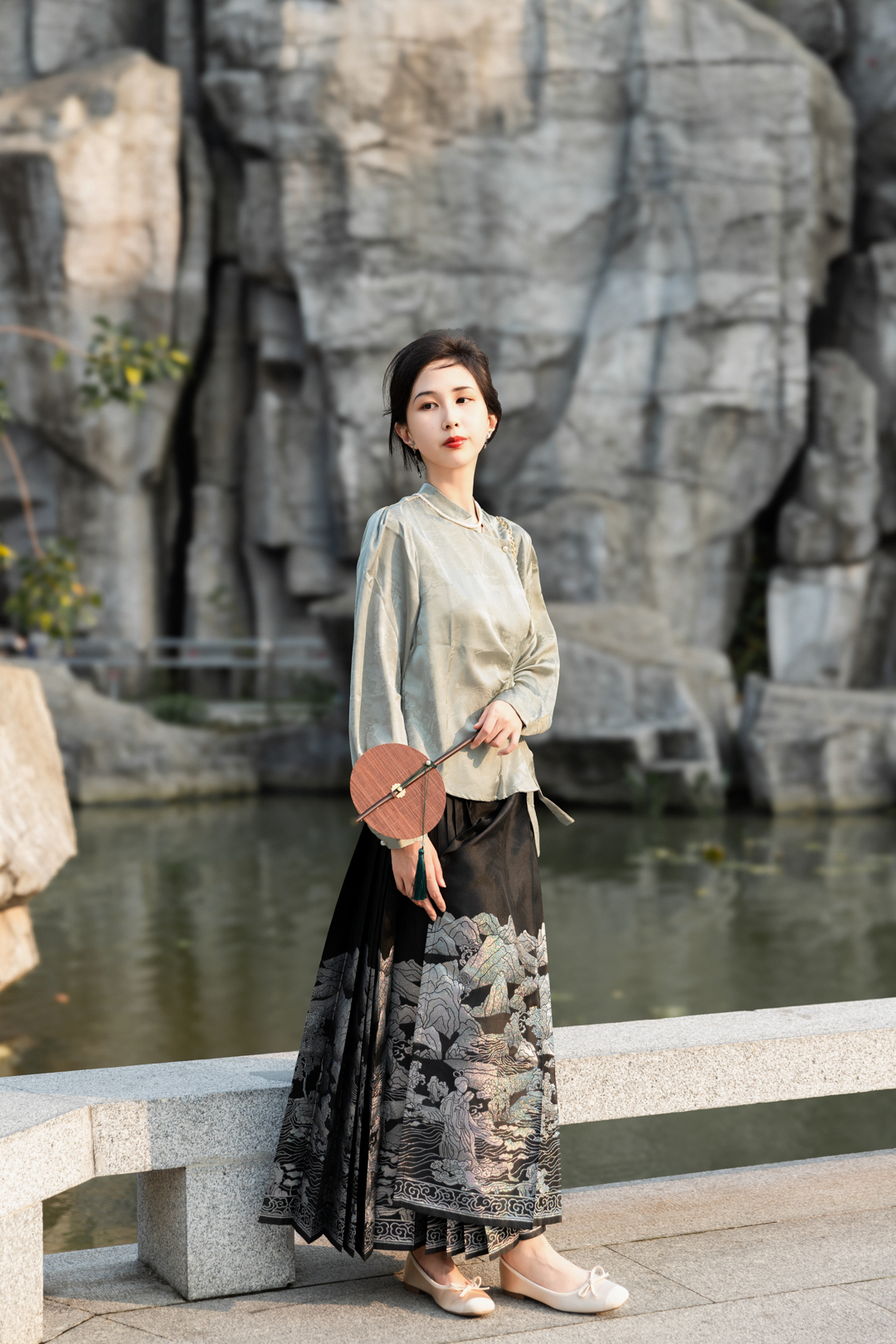 我對馬面裙的研究實在算不上深入,但如果只把它當作一條半身長裙來看,搭配就變得輕松許多,款式就盡管選自己覺得好看的。