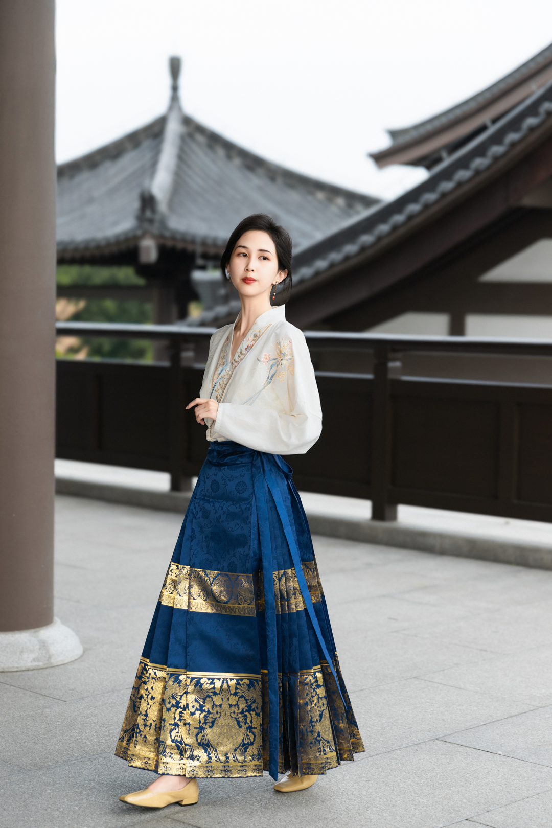 第二條馬面裙,我選了藏藍色拼接金色的配色。