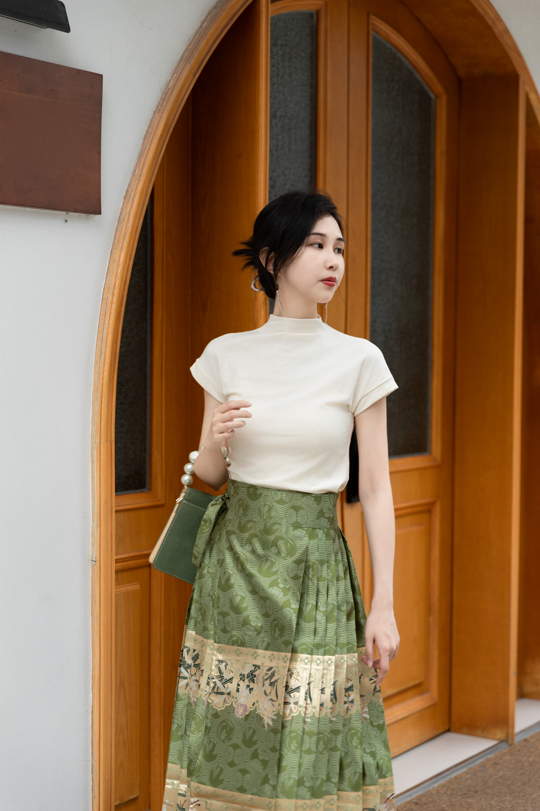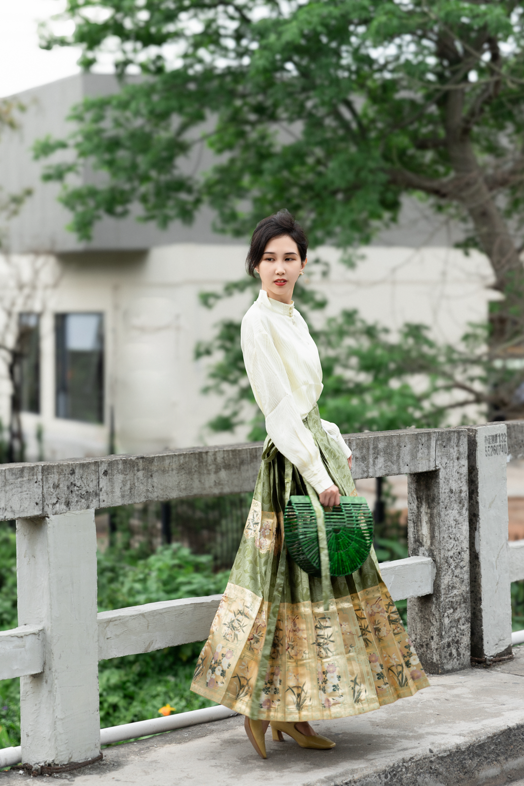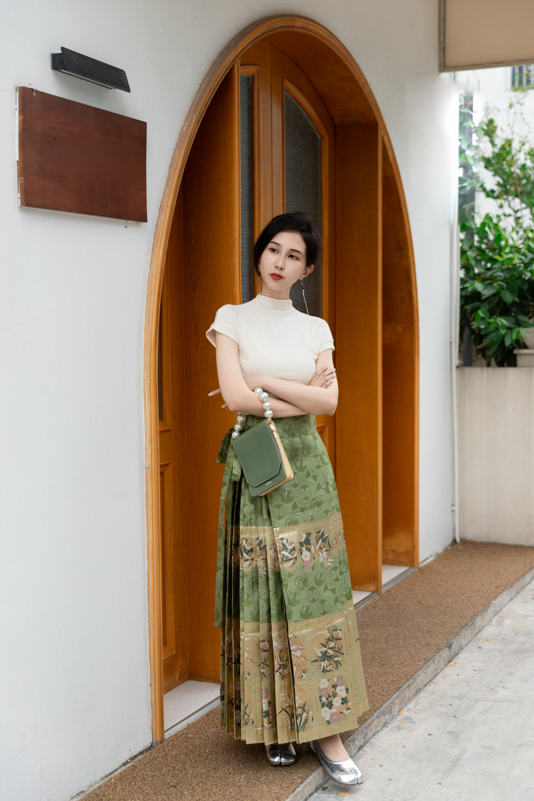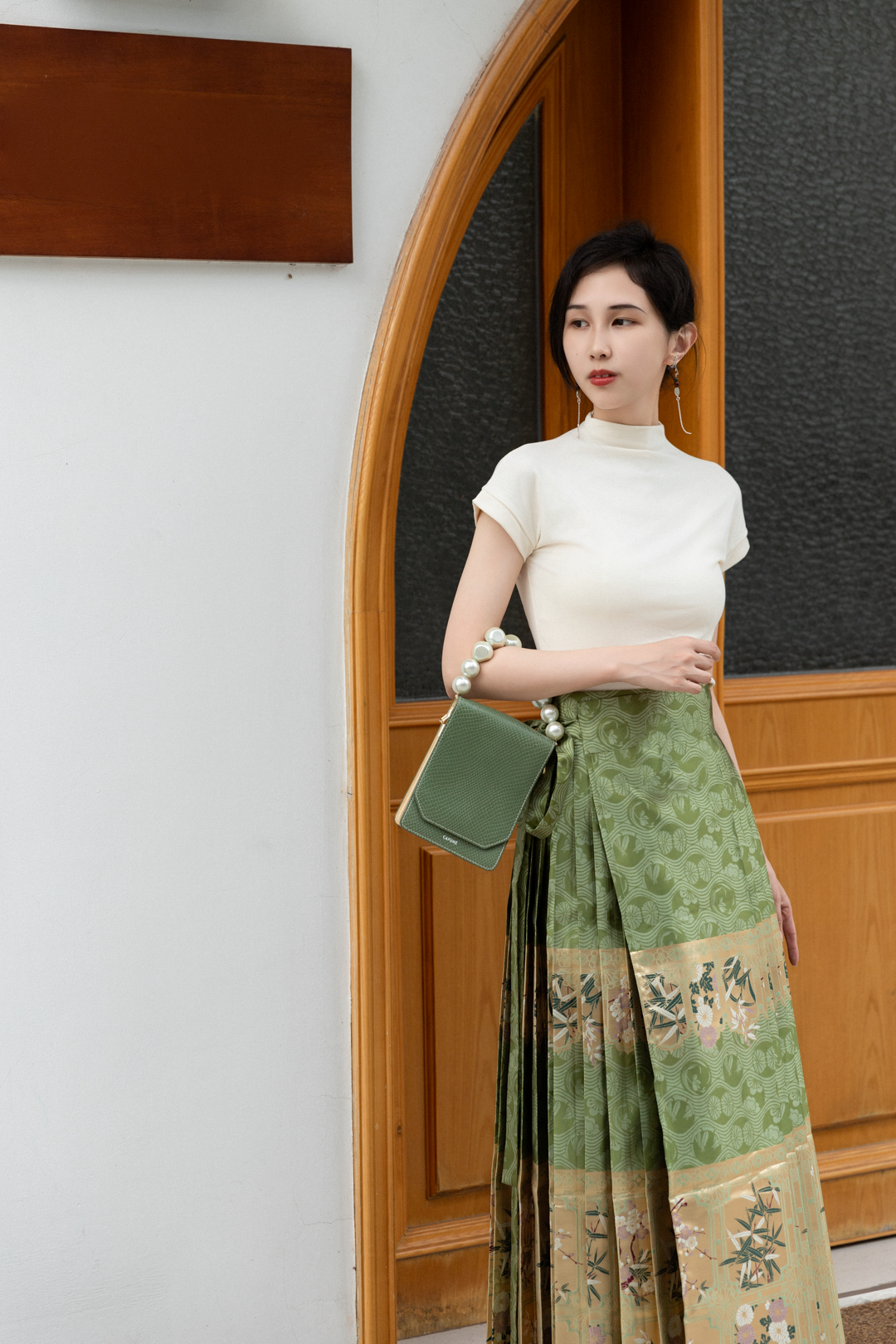 這不,我特意找來了一條生機勃勃的綠色馬面裙,不管穿什么風格,都要將春意進行到底。