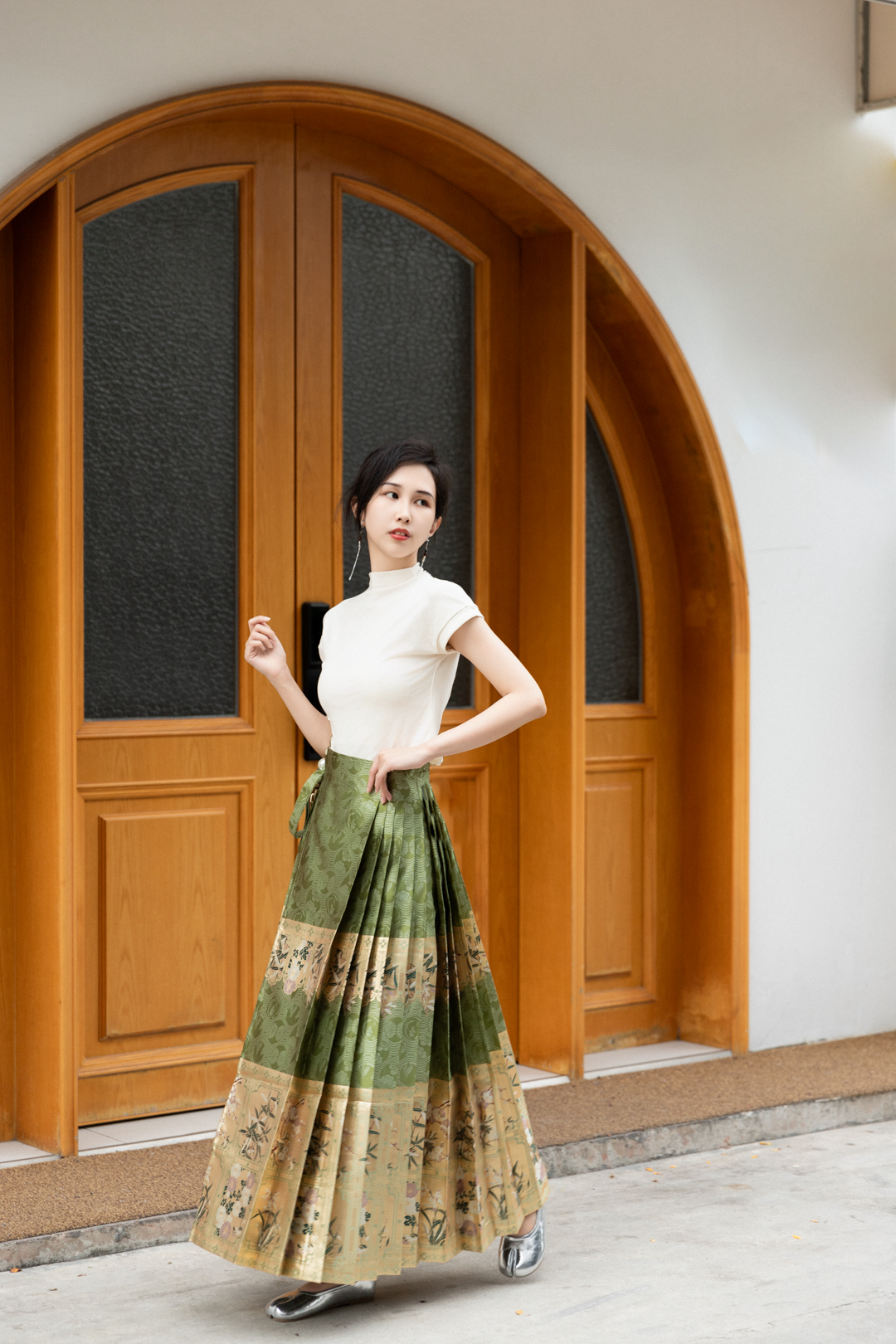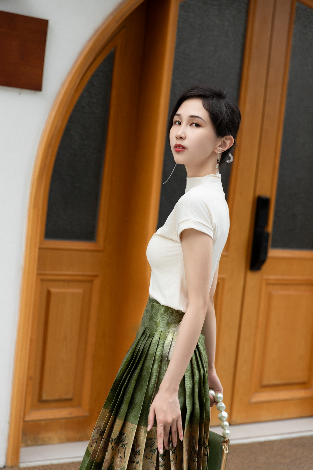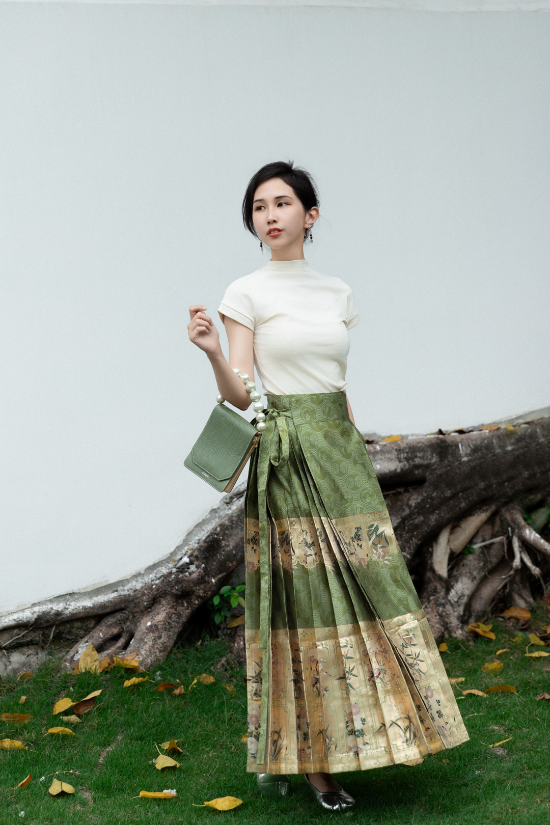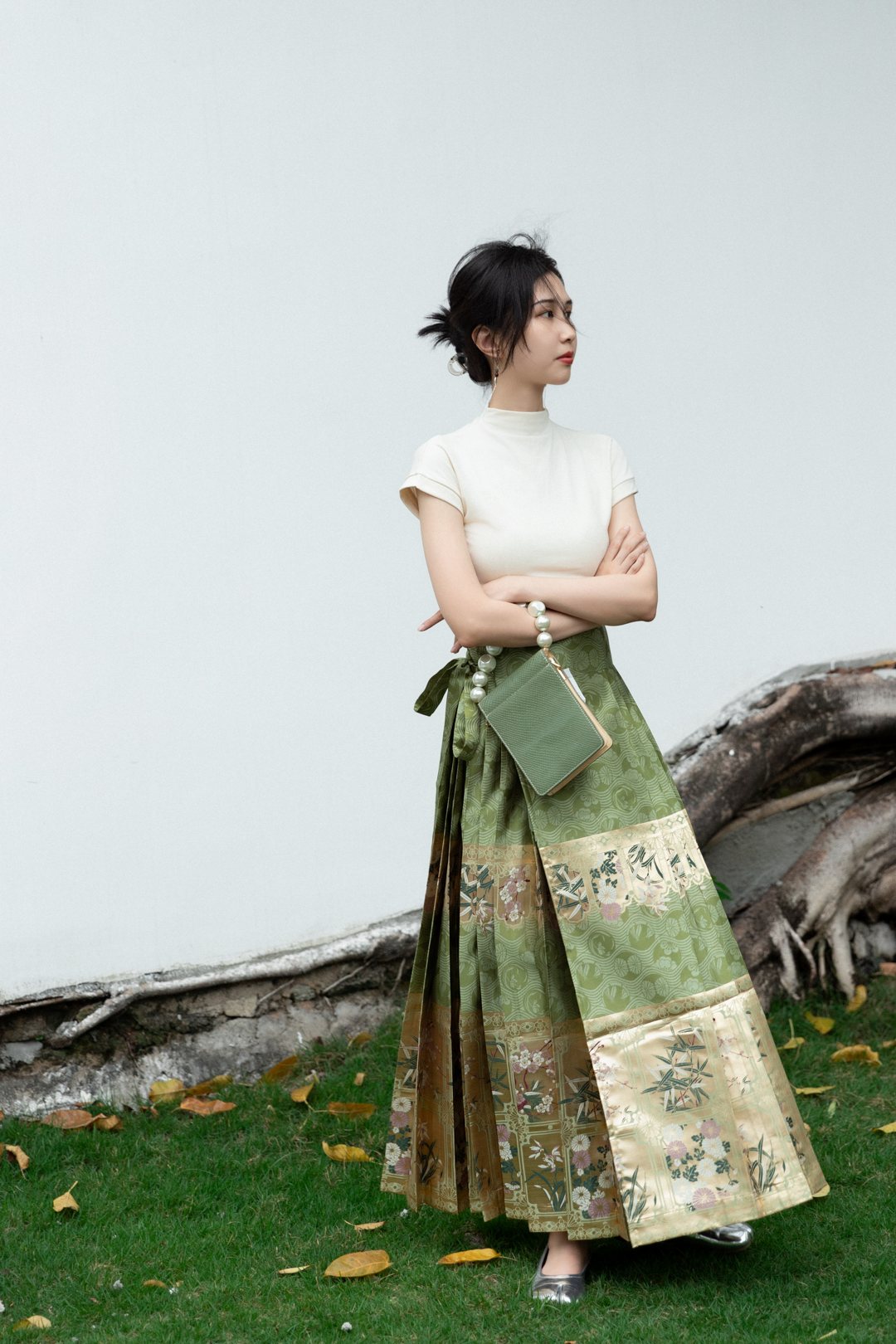 這不,我特意找來了一條生機勃勃的綠色馬面裙,不管穿什么風格,都要將春意進行到底。