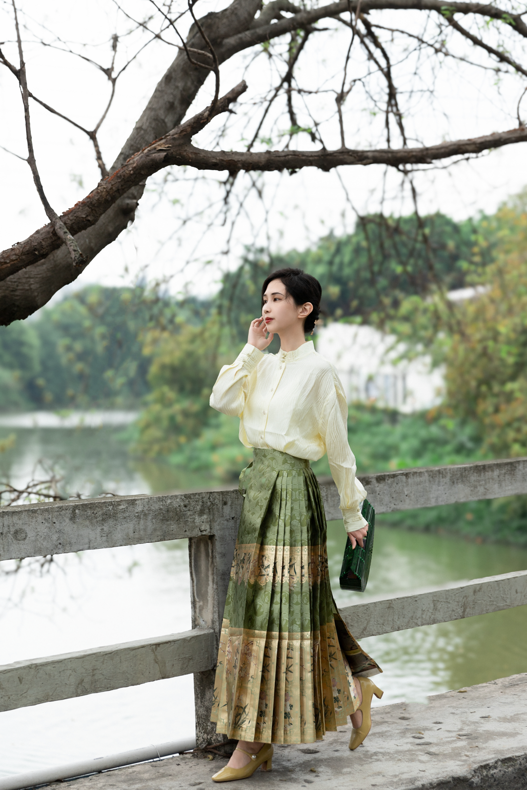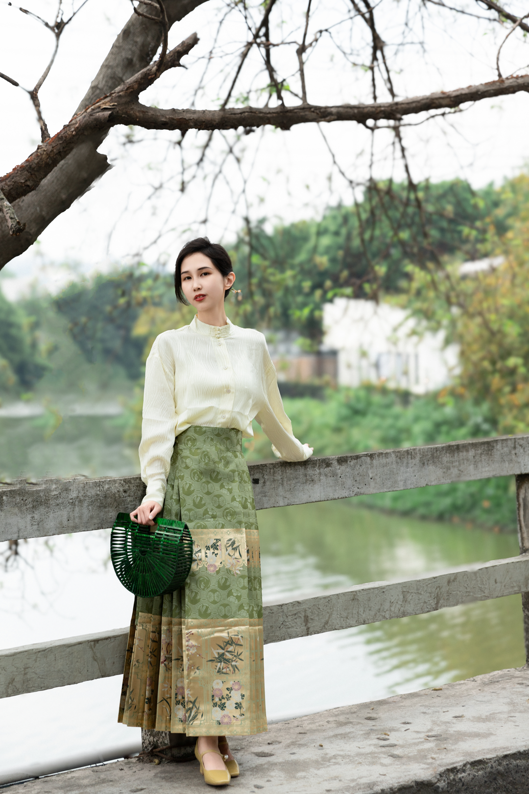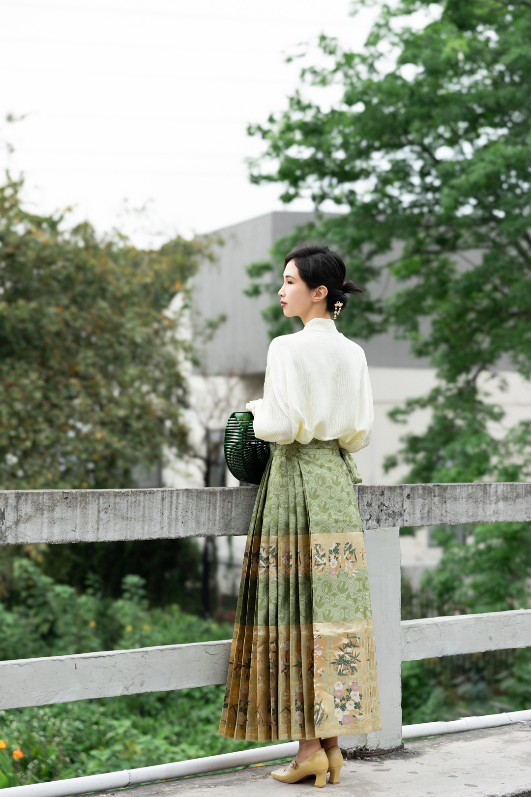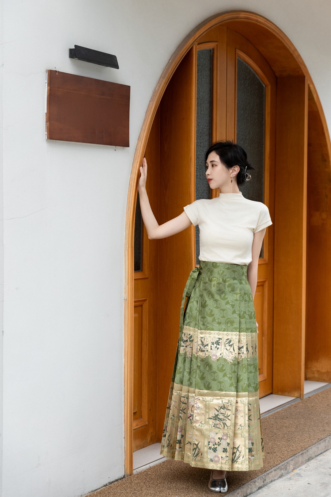 這不,我特意找來了一條生機勃勃的綠色馬面裙,不管穿什么風格,都要將春意進行到底。