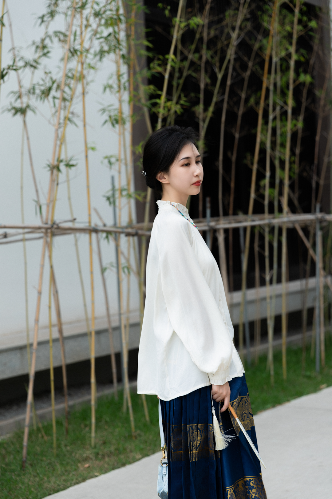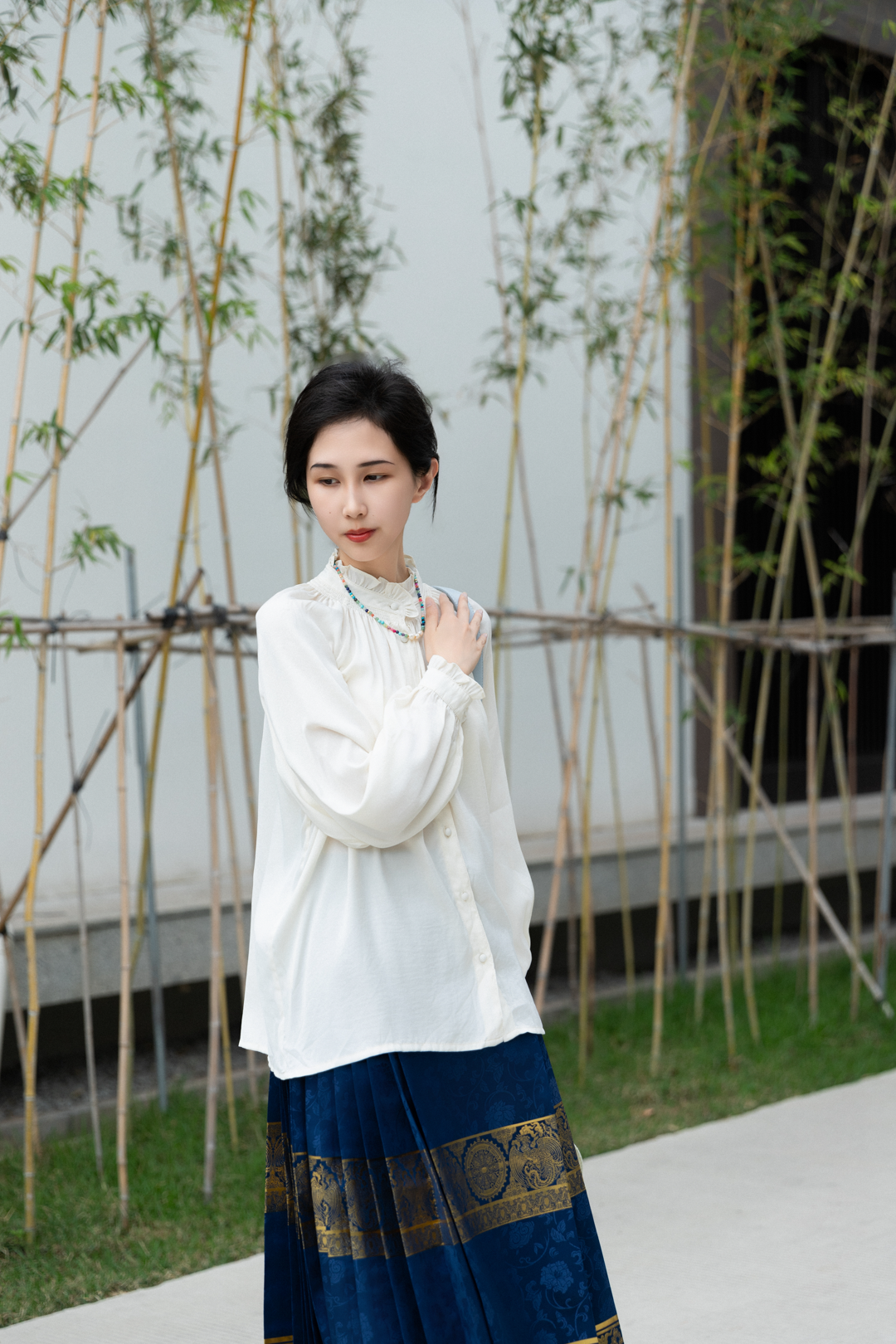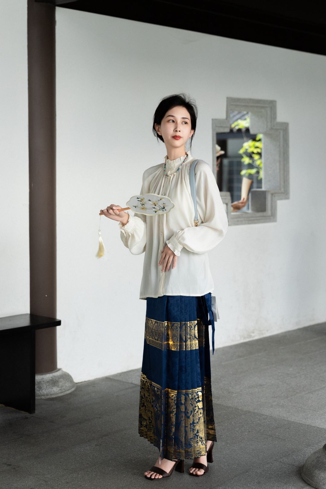 第一套我搭配了一件明制的飛機袖對襟襯衫,無論是朝代還是樣式,和馬面裙都能算作是天作之合。