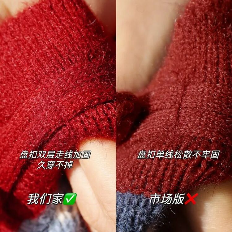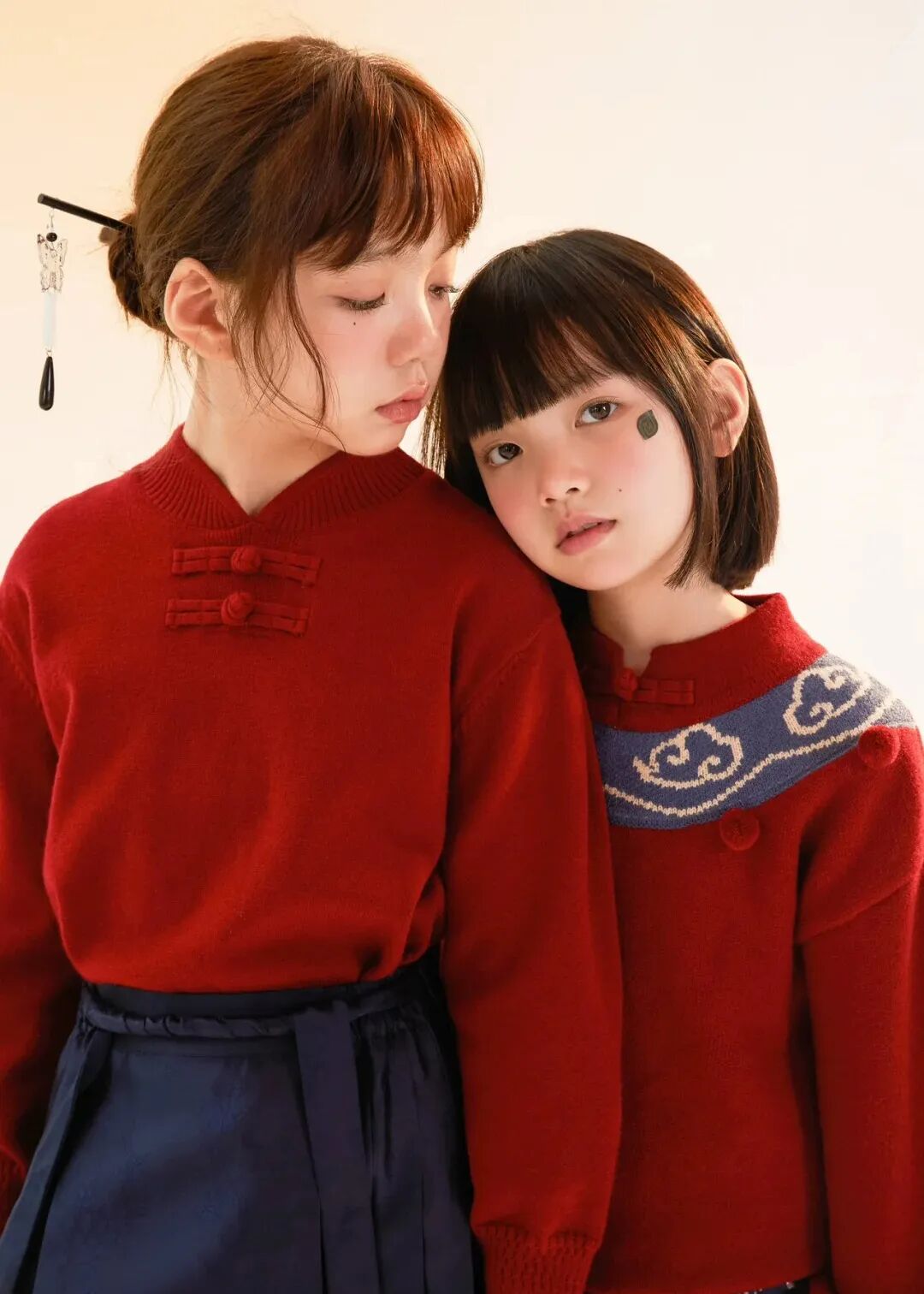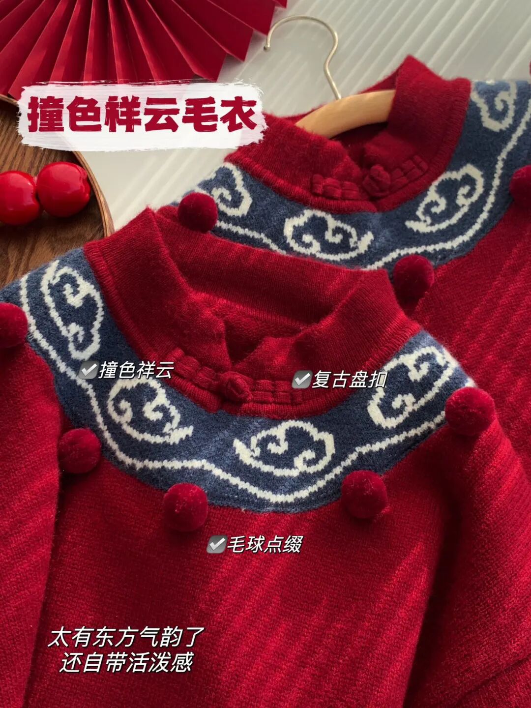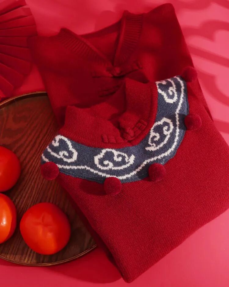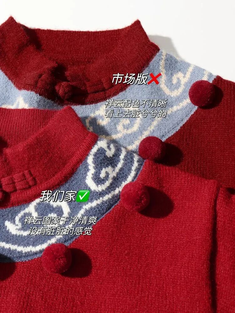 首先,它在款式上有兩種:盤扣毛衣&祥云毛衣。