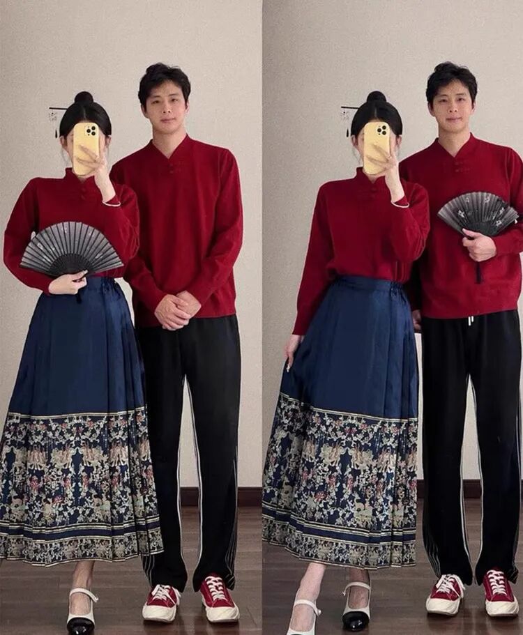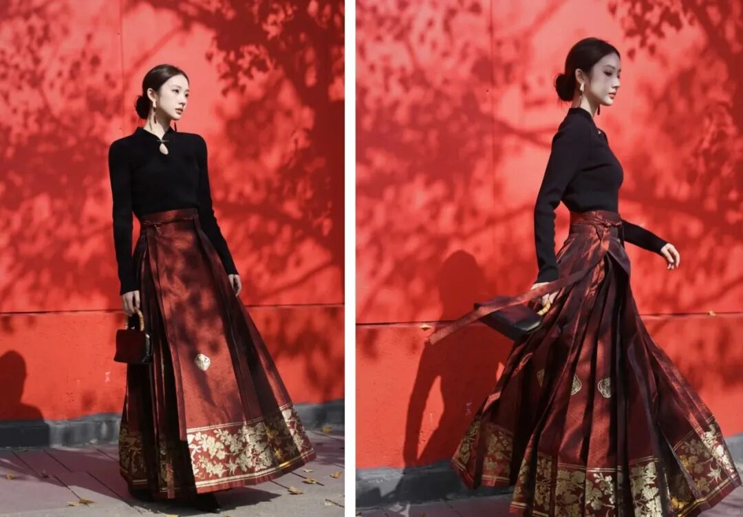 也可以直接毛衣上身,下身穿馬面裙,整個冬天都是暖洋洋的。