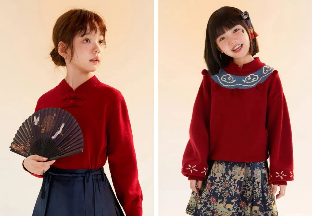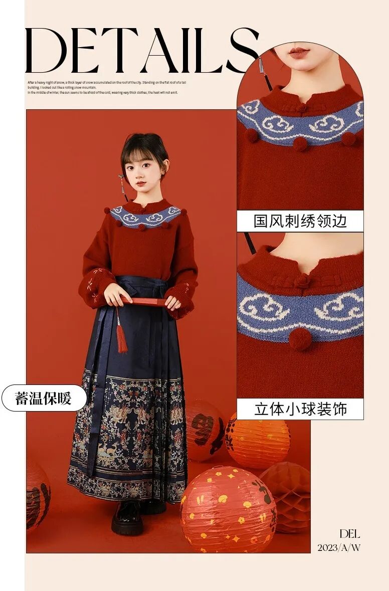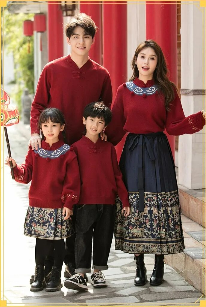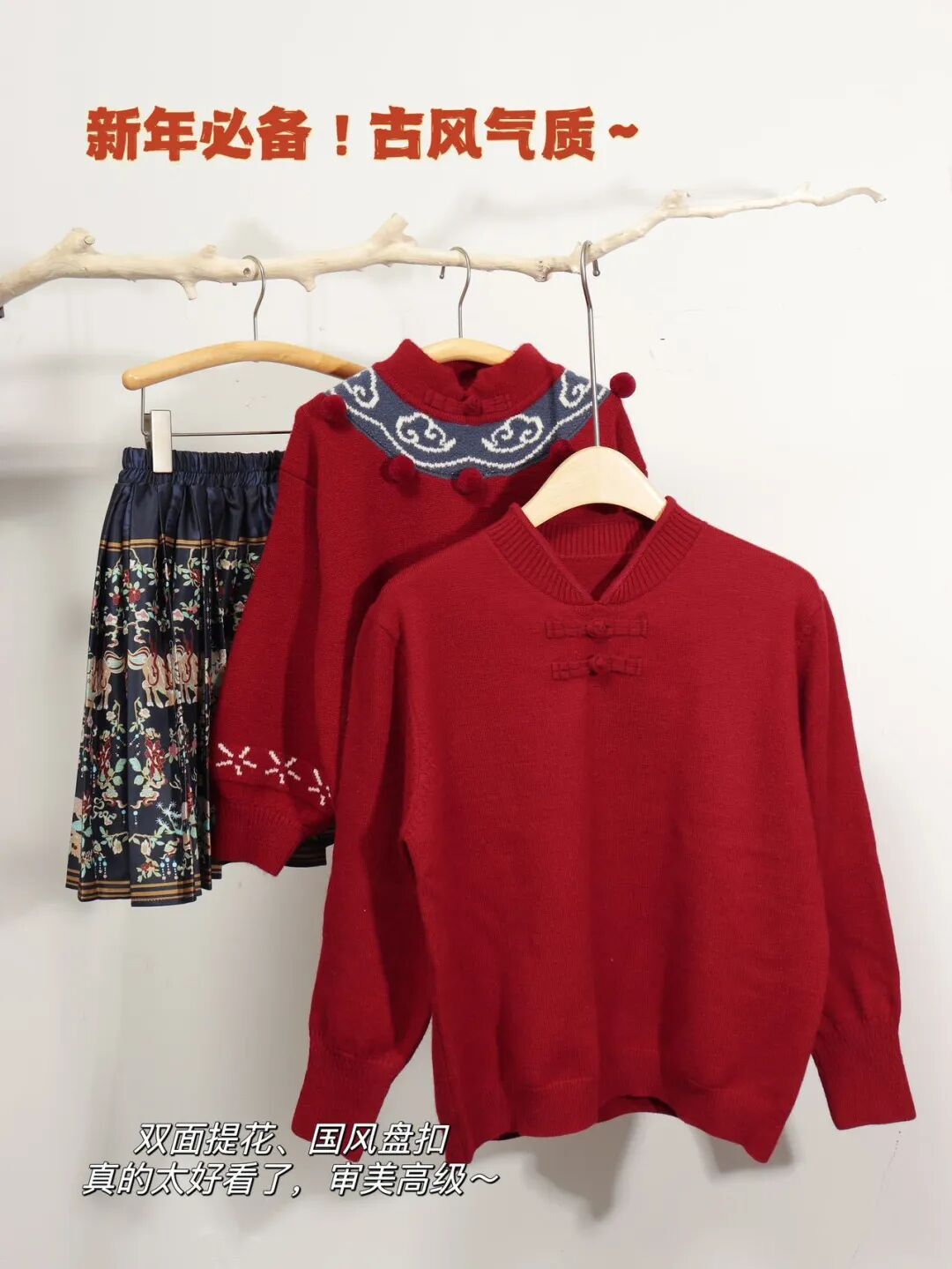 新中式毛衣+國潮馬面裙,過年穿這一套,滿屏的高級感,兒童、成人款都有!