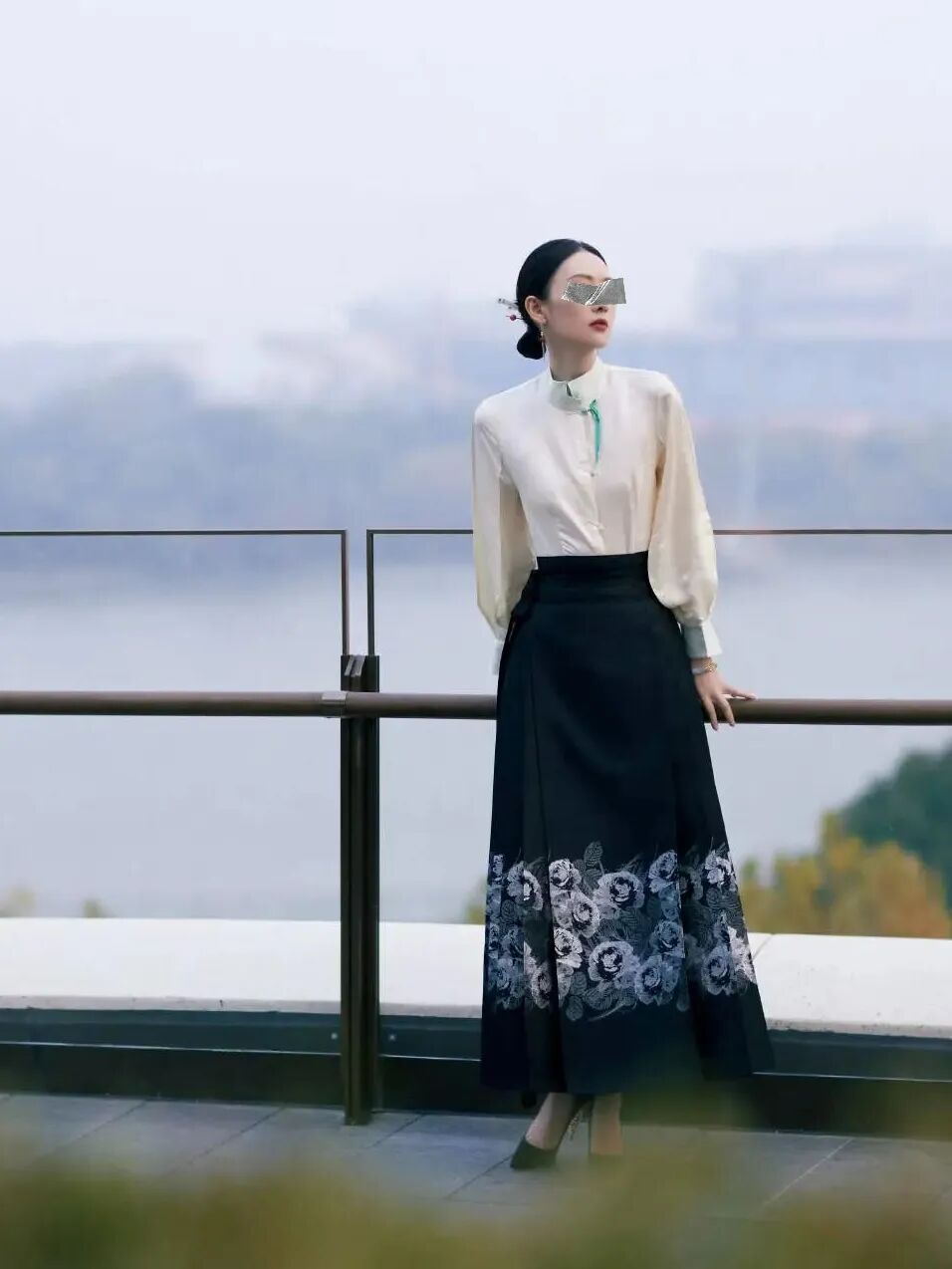 當然,別忘了還有馬甲,襯衫+馬面裙,一樣能襯出不一樣的風格!