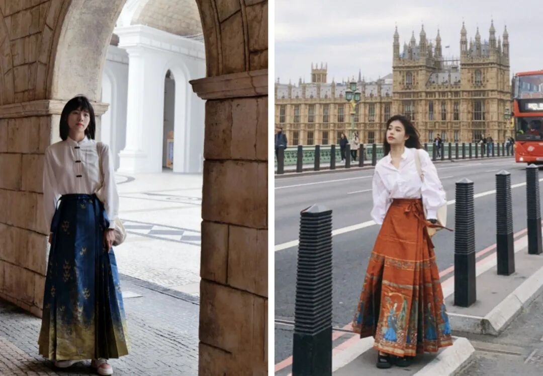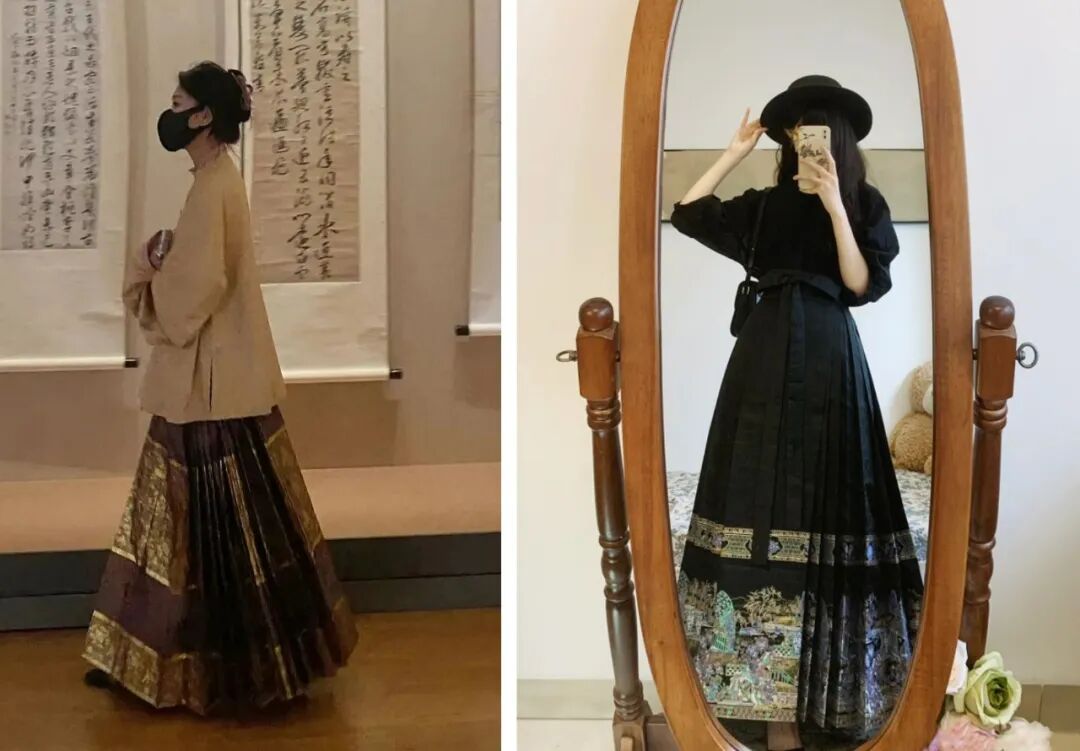 長款就是很還原漢服版型,短裙則是改良中式百褶裙。