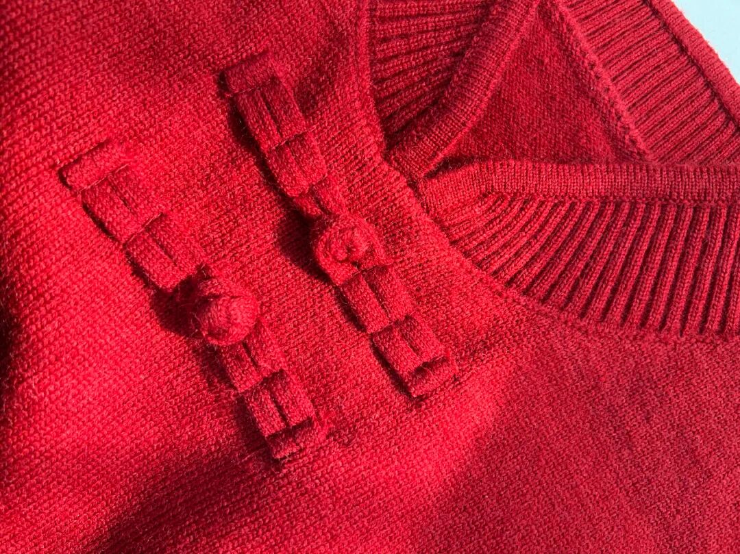 盤扣毛衣,是按照旗袍設計改良而成的套口款,裝飾性盤扣,直接將國風調調拉滿。
