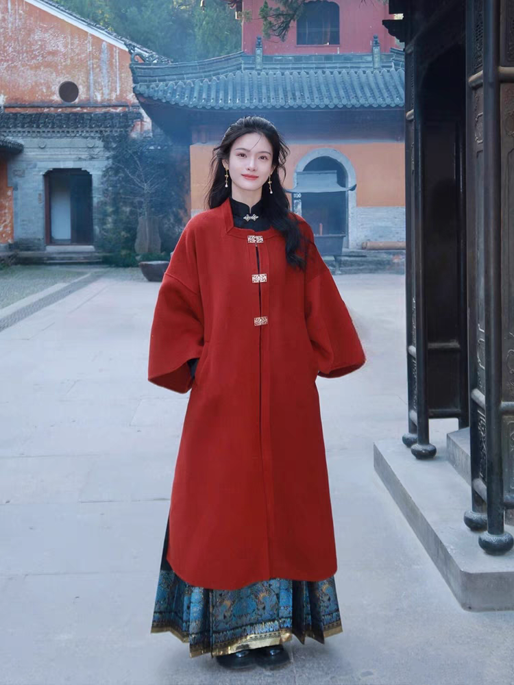 尤其是這套馬面裙+大衣的搭配,屬實開闊了秋冬穿搭的新思路。