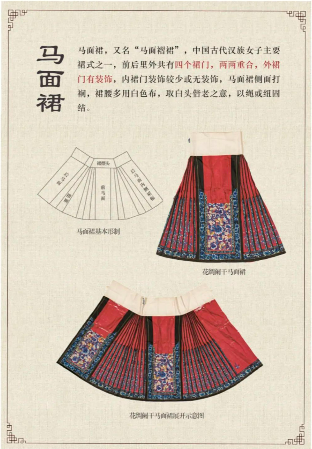 它是一種特殊的裙子,得名于其裙擺的形狀與馬臉相似。宋代的旋裙發展到明代,逐漸形成了馬面裙。