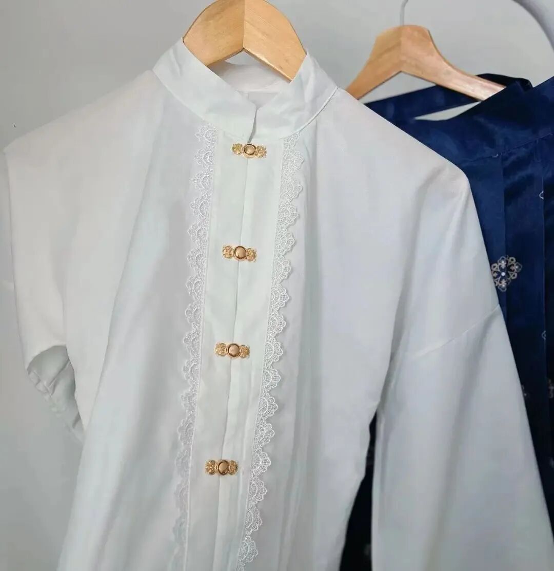 在上半身設計方面,這款上衣采用了優(yōu)雅古韻的立領領口,搭配細致精巧的蕾絲,美輪美奐。