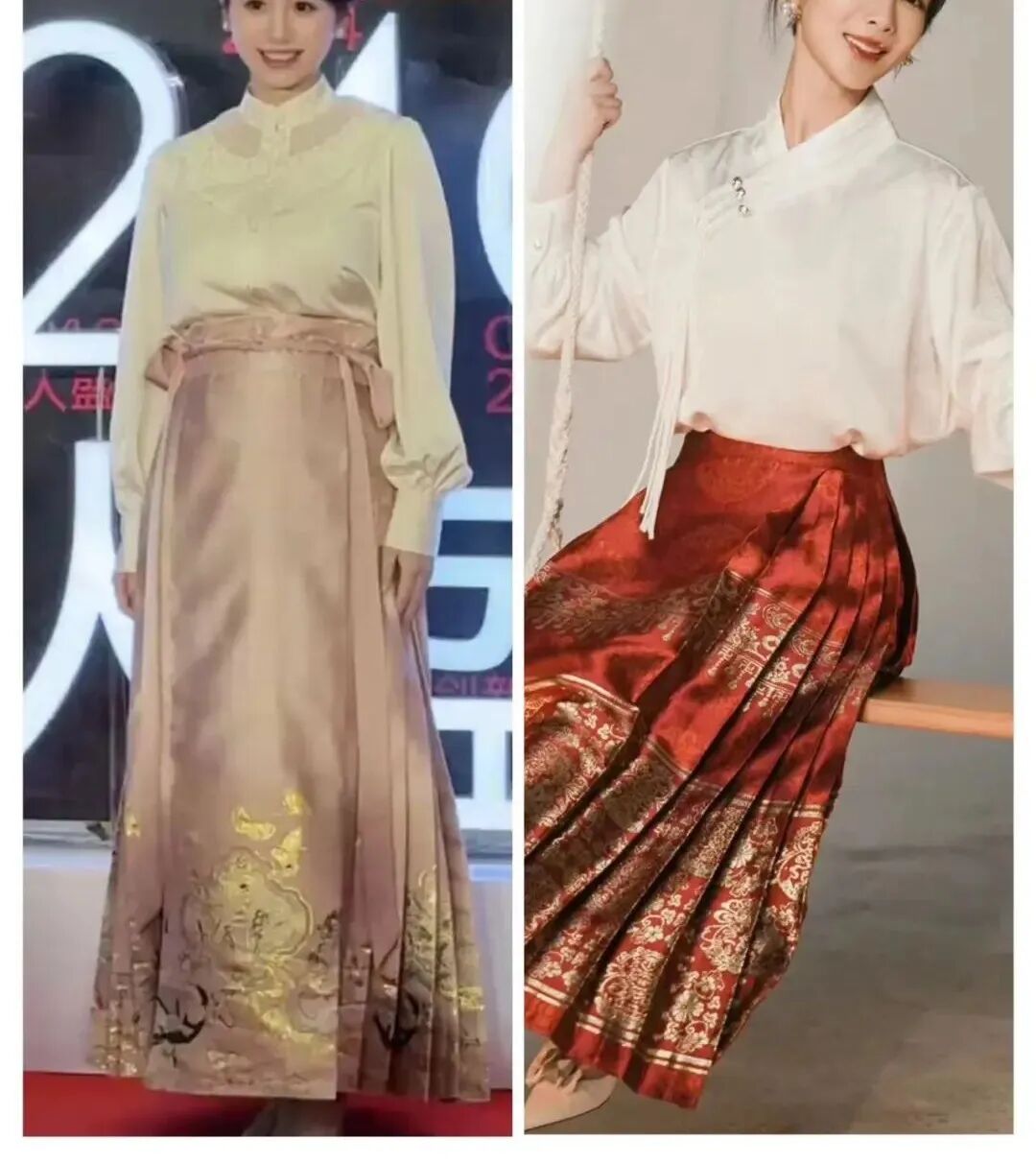 難怪那么多明星都愛穿,楊mi、楊zi……都在各種正式、日常的場合穿馬面裙。