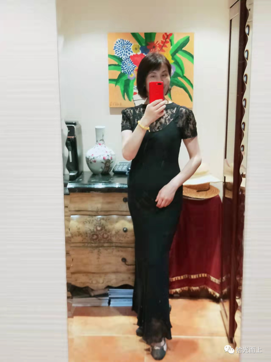 大家看看我穿黑色長吊帶連衣裙的效果,是不是比上述馬面裙更顯苗條?