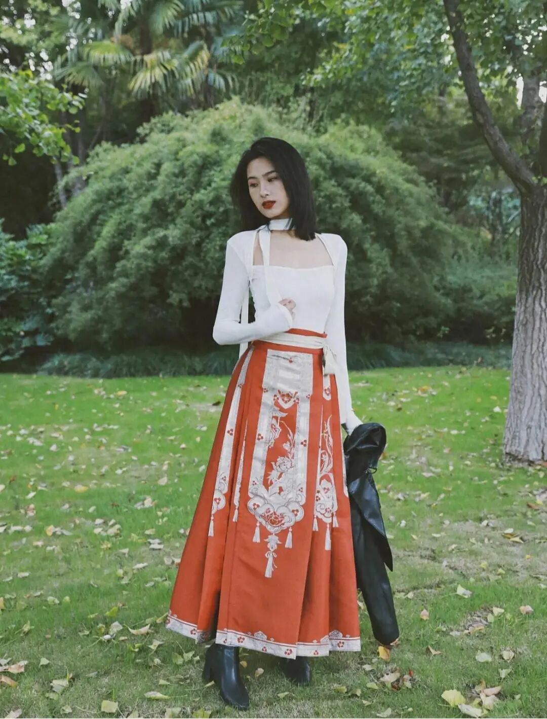 喇叭狀版型,高腰設計,以及獨特的刺繡圖案,這些都是馬面裙的標志性特點。