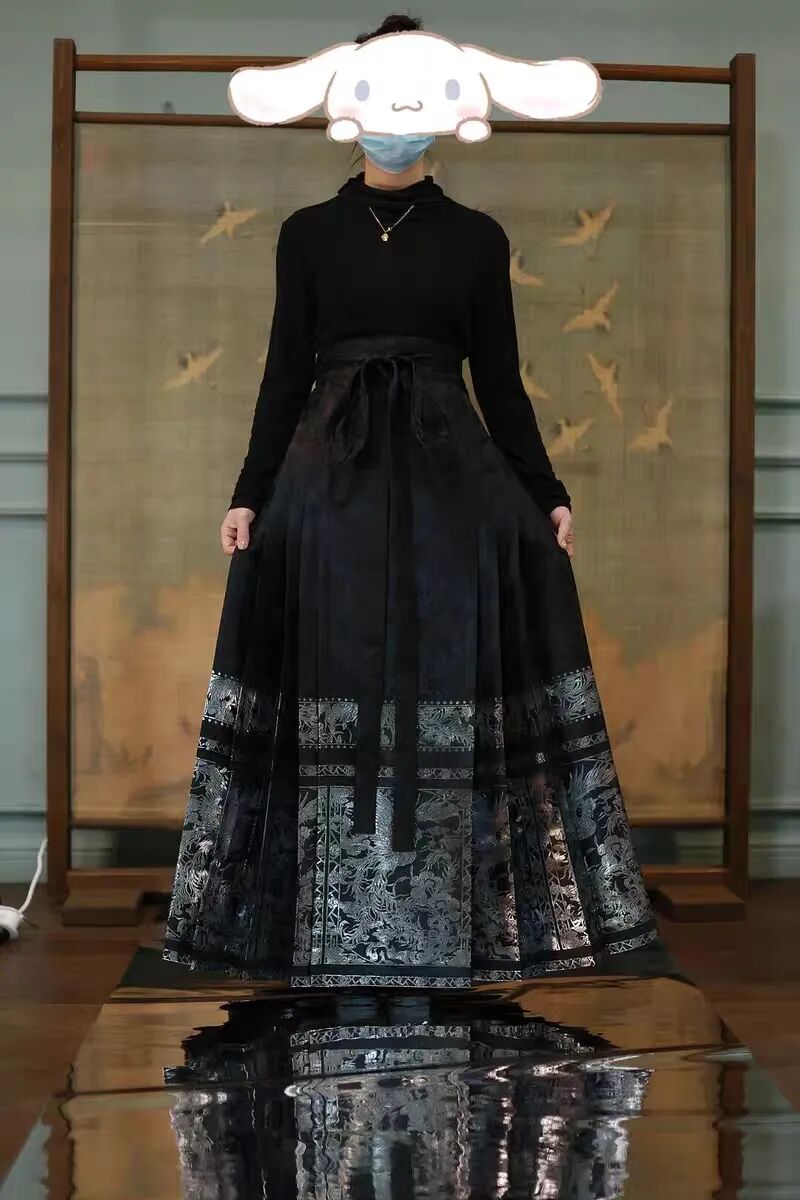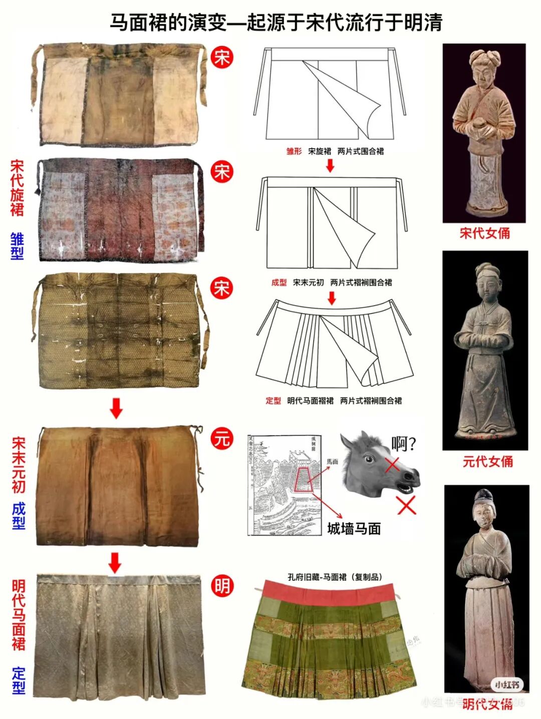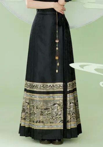 中國馬面裙最初是為了方便當時女性騎馬而產生的服裝,可以追溯到宋朝時期。而在明清時期,這種裙子變得非常流行,也被稱為馬面褶裙。