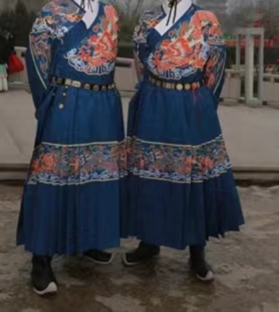 這里的馬面裙也是一個很明確的類型統稱詞,是對具有馬面結構特征裙子的總體命名。而且到了現代,服飾專家包銘新、黃能馥等學者,同樣使用馬面裙對清政權時期的女裙進行統稱指代。但是值得注意的是:黃釗的表述中,只有女款,現代服飾專家的指稱對象也是女款。從清政權以來,學者總結的馬面裙名詞概念中,不包括男款。