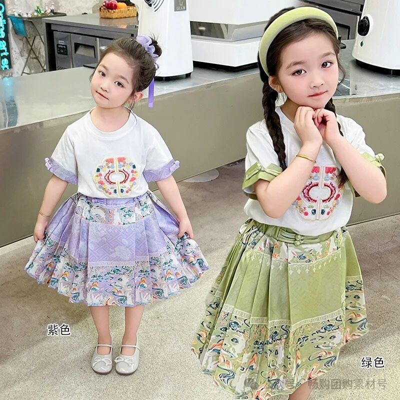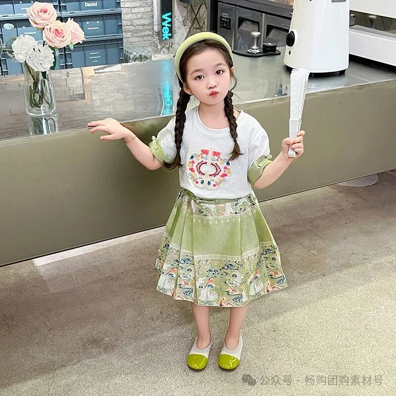 將這份韻味與現(xiàn)代審美相結(jié)合,為孩子們帶來(lái)這款女童國(guó)風(fēng)馬面裙套裝!