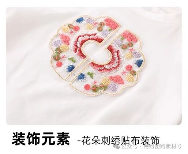 上衣不規(guī)則色彩刺繡如同畫布上的點(diǎn)睛之筆,袖口拼接的馬面裙同款絲線面料,細(xì)節(jié)上的呼應(yīng),讓整體造型更加和諧統(tǒng)一。