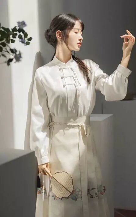 馬面裙的亮眼色彩搭配,更是讓整身穿搭顯得更加吸睛,走在人群中非常突出,既然選擇將色彩重點放在裙面色彩上,通常外套需要選擇一款淺色調(diào)的簡約外套。