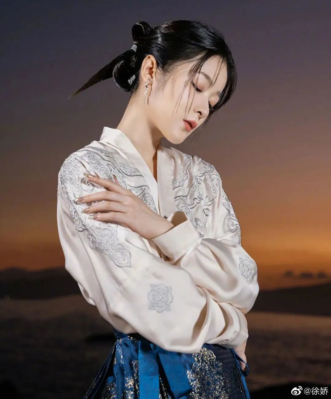 徐嬌一身簡潔干練的傳統(tǒng)漢服穿搭