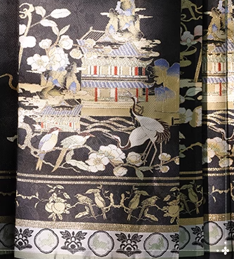 明代馬面裙上有織金襕,或只有底襕,或底襕加膝襕,十分華麗。裙襕紋飾多為中國傳統(tǒng)吉祥圖案,如蝙蝠與云紋組合寓意洪福齊天、燈籠紋樣寓意五谷豐登,還有龍、鳳、麒麟、天狗、玉兔等吉祥動物圖案。