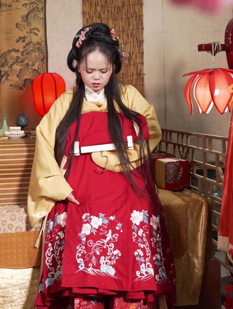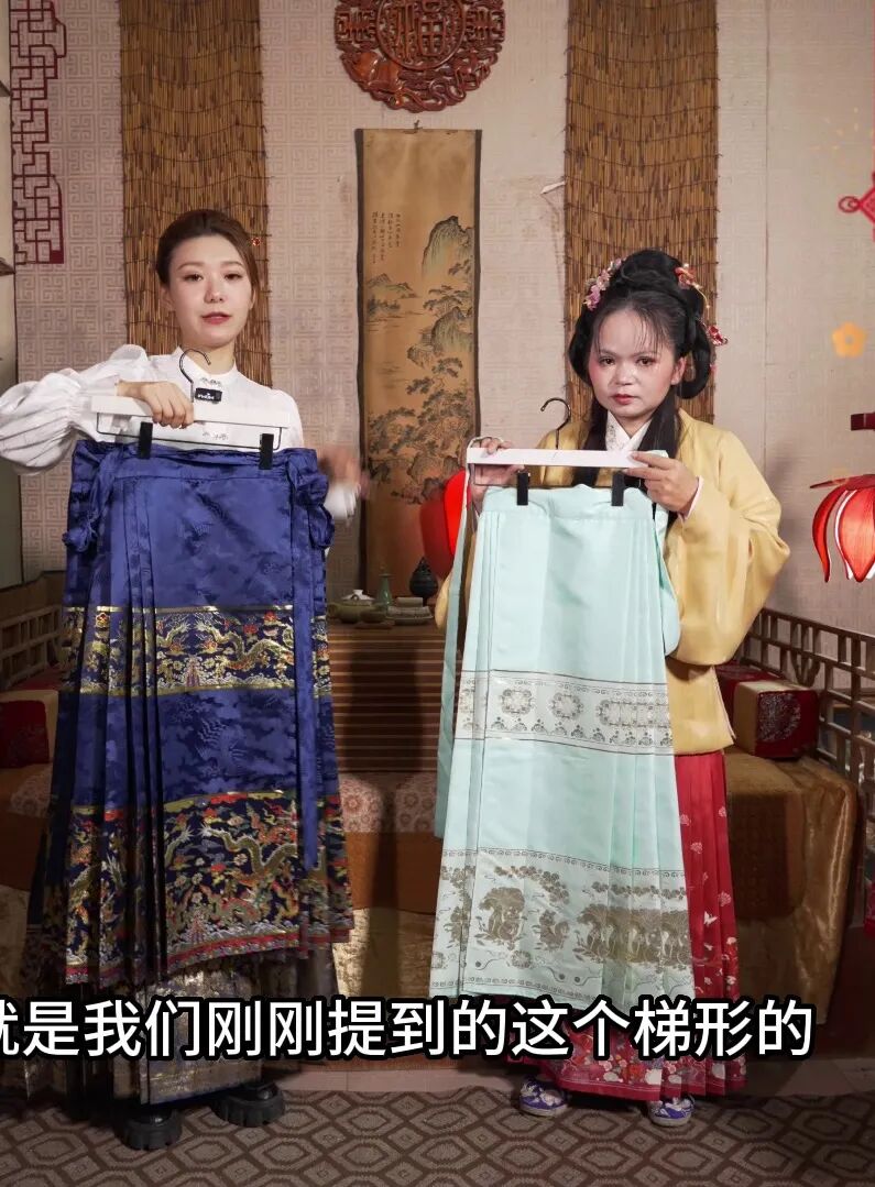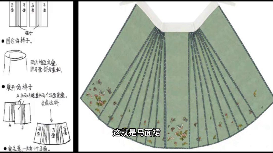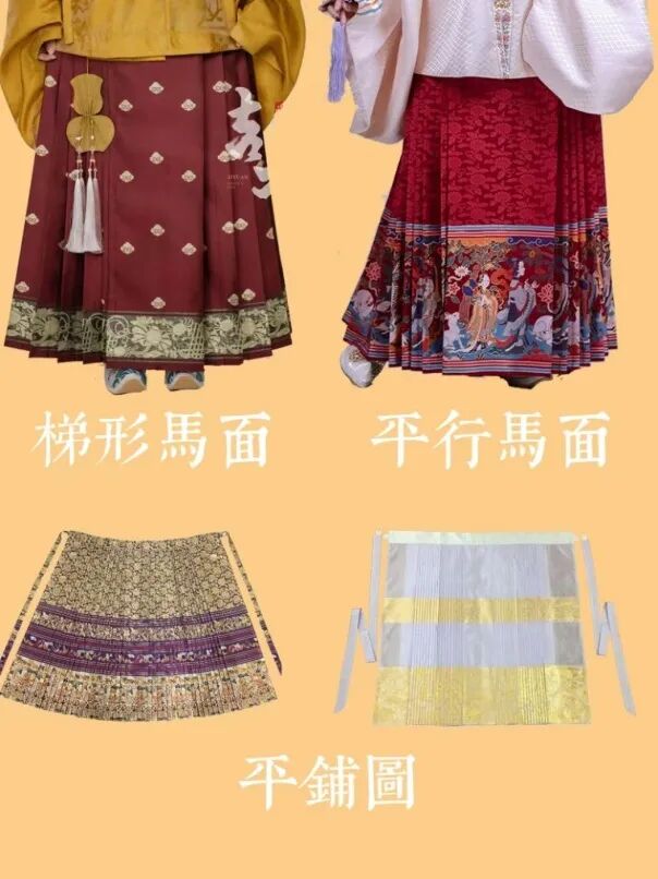 馬面裙是漢服體系中漢人創造的款式,來自先秦時期多幅拼接的一片式圍合裙,雛形源自宋代旋裙即兩片式圍合裙。