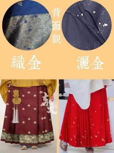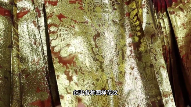 織金是織布時就用金線織出花紋。根據金線的種類又分為扁金、圓金、包金。
