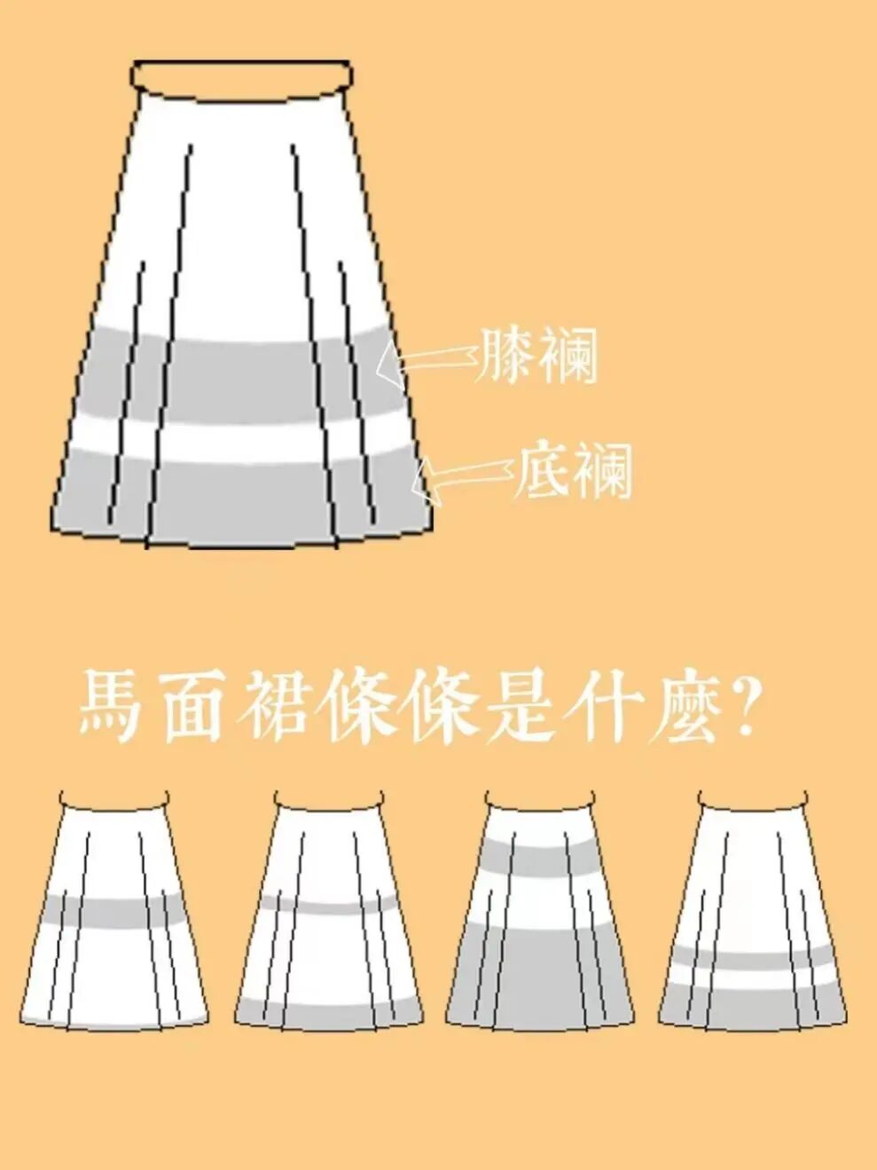 膝襕指服裝膝蓋處的一種裝飾,通俗的說就是馬面裙中間位置的一圈花紋;底襕就是馬面裙底部的一圈花紋哦~