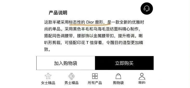 迪奧馬面裙的介紹頁(yè)面 網(wǎng)頁(yè)截圖