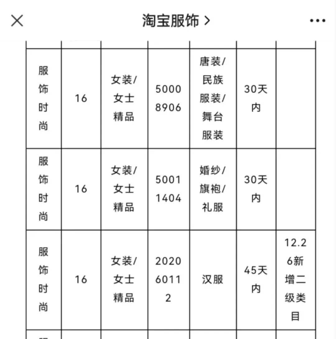 去年12月26日,淘寶服飾新增漢服為二級(jí)類(lèi)目,漢服將與婚紗/旗袍/禮服平起平坐。在漢服二級(jí)類(lèi)目下,還設(shè)有漢服上裝、漢服褲裝、漢服套裝、漢服半身裙和漢服連衣裙5個(gè)新葉子類(lèi)目,以供商家勾選。這意味著商家售賣(mài)的漢服商品不必再被塞進(jìn)女裝民族服飾等大類(lèi)中,將更為獨(dú)立、精準(zhǔn)地觸達(dá)消費(fèi)者。