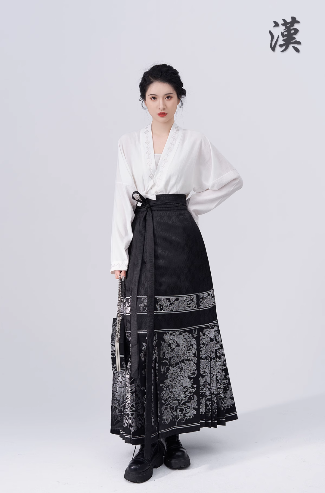 謝凌龍表示,很多年以前,雖然在影視劇、新聞和熱搜里,漢服相關(guān)的討論已經(jīng)很熱鬧了,但是并沒(méi)有形成市場(chǎng)消費(fèi)的轉(zhuǎn)化。在他看來(lái),一個(gè)原因就是當(dāng)時(shí)的商品并不利于漢服推廣。以前的漢服商品很多都是3件套、4件套、5件套,裙子特別長(zhǎng),穿起來(lái)麻煩。但馬面裙的魅力之一就是穿起來(lái)很簡(jiǎn)單、很百搭。