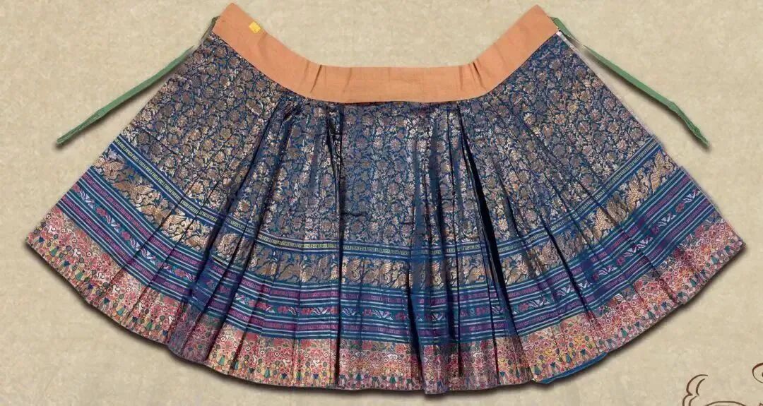 藍(lán)色纏枝四季花織金妝花裙 (明)