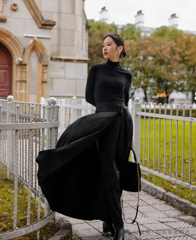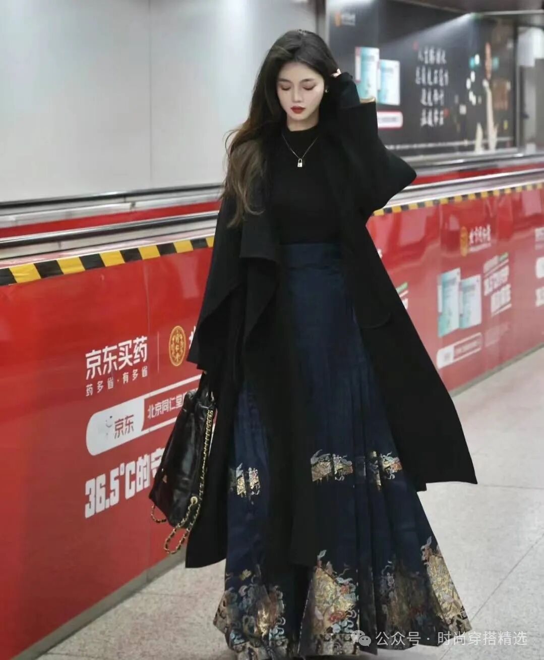 對于很多小個子女生來說,秋冬搭配裙子都比較麻煩,因為要兼顧到身材比例。而馬面裙的版型設計既收腰顯瘦,同時還能提升腰線,搭配起來可以輕松凹出身材曲線。