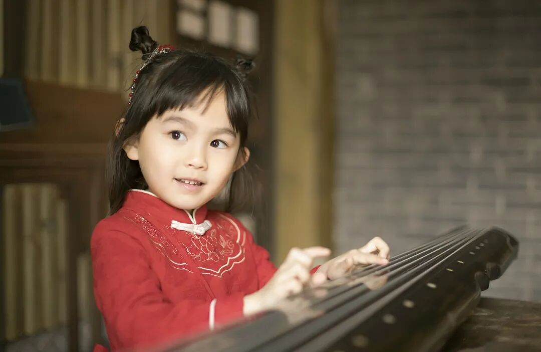 ▲身穿漢服彈奏古琴的小女孩。(視覺中國 / 圖)