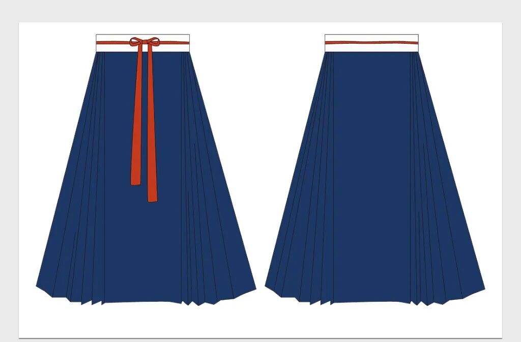 裙子從貼身的腰部開始,向下展開至較寬的下擺,褶邊一般深約 30 厘米。這樣可以讓人充分活動,與中國服裝既要美觀又要實用的傳統需求相呼應。這種剪裁通常有多層,最上層是褶裥的主要部分。