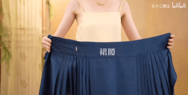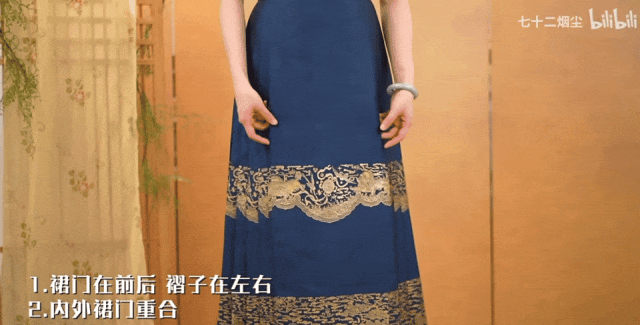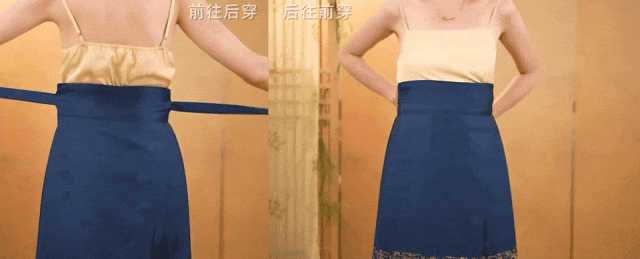 漢服下裙普遍是圍攏式的穿法。馬面裙既可以從前往后穿,也可以從后往前穿。