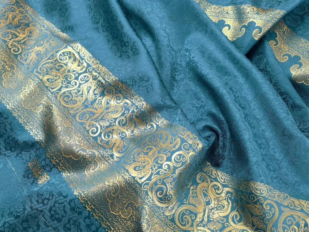 這件馬面裙所采用的妝花緞是南京云錦中織造工藝最復雜的品種,堪稱中國絲綢史的工藝頂峰,至今仍無法用機器替代。一塊料必須兩個人同時織造,一個人控制圖案,一個人控制顏色,一天最多只能織5厘米到6厘米。