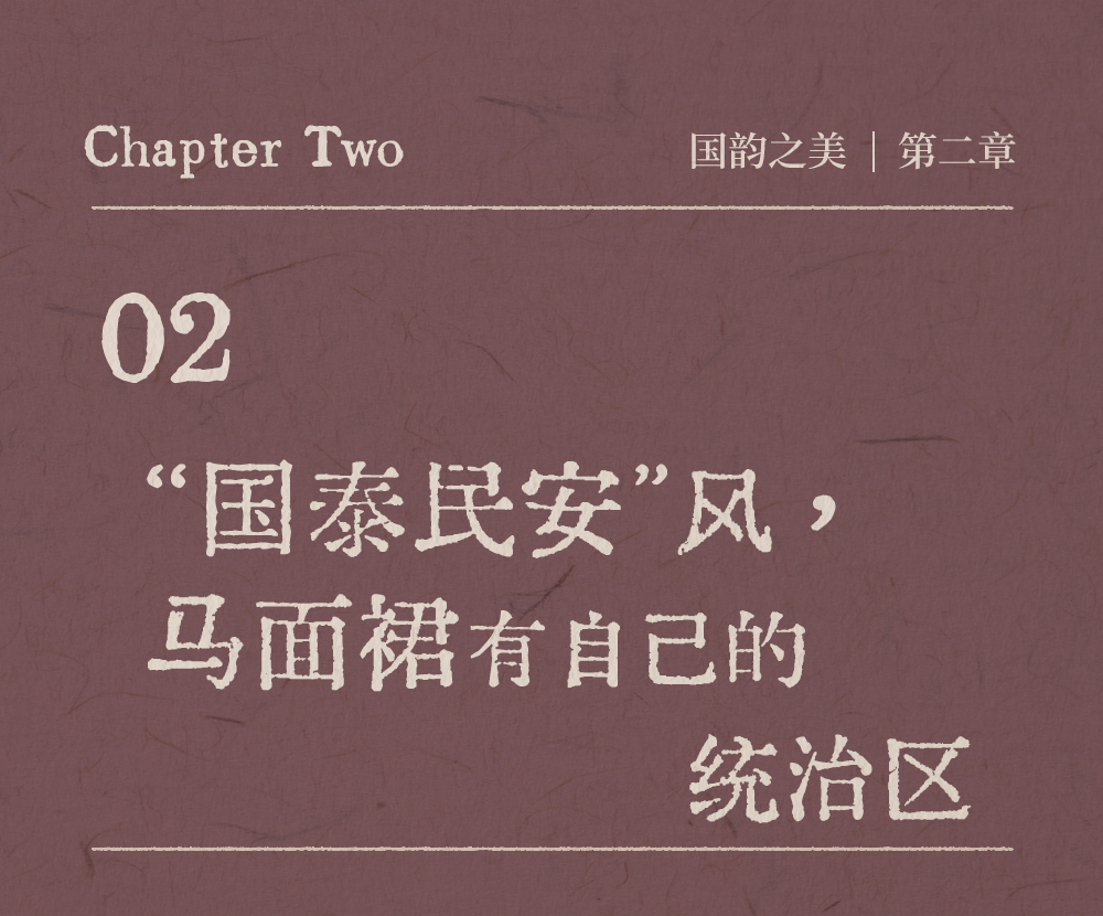 既入得廟堂,也宜室宜家。馬面裙承載了古人的手工藝智慧,其雅致之美,體現在裙面的紋飾上。