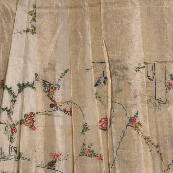 清·白色暗花紗繡花鳥紋裙
