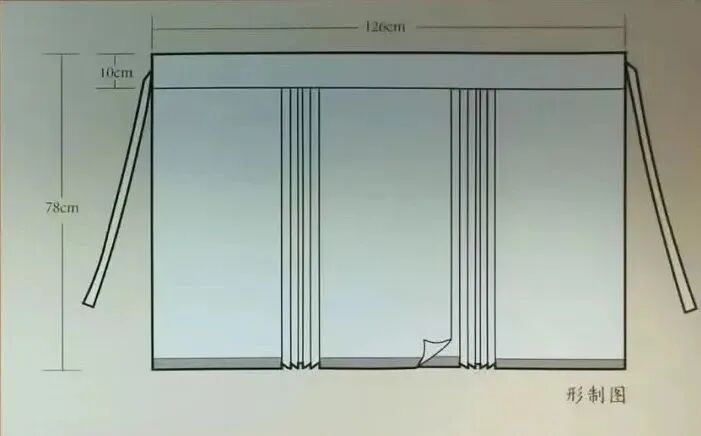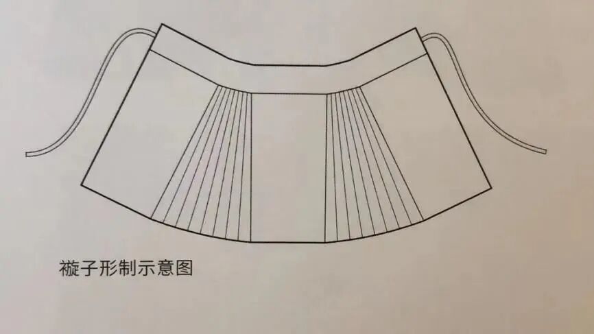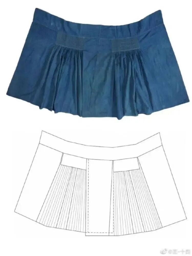 比如褶裥的制作,華夏講究以折代剪,講究自然,不會刻意地剪掉褶裥多余部分,并不是西式省道的做法。而且最關鍵的是,馬面褶裙自然要褶裥,是布幅打褶打出來的褶裥,而不是像闌干裙這樣,裁好裙片后,拼接出來的梯形效果。