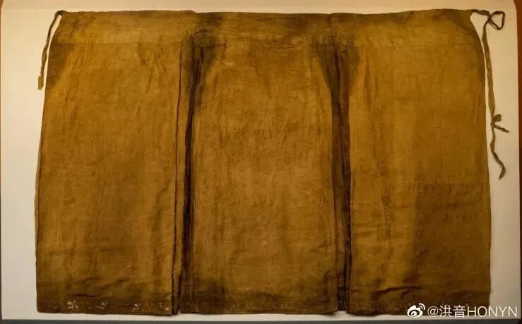 這條裙子是迄今為止發現的最早實物裙子。距今2100年西漢馬王堆一號墓出土的單裙,與先秦時期相比,基本上沒有本質上的區別,只是裁片大小、緣邊等細節變化。