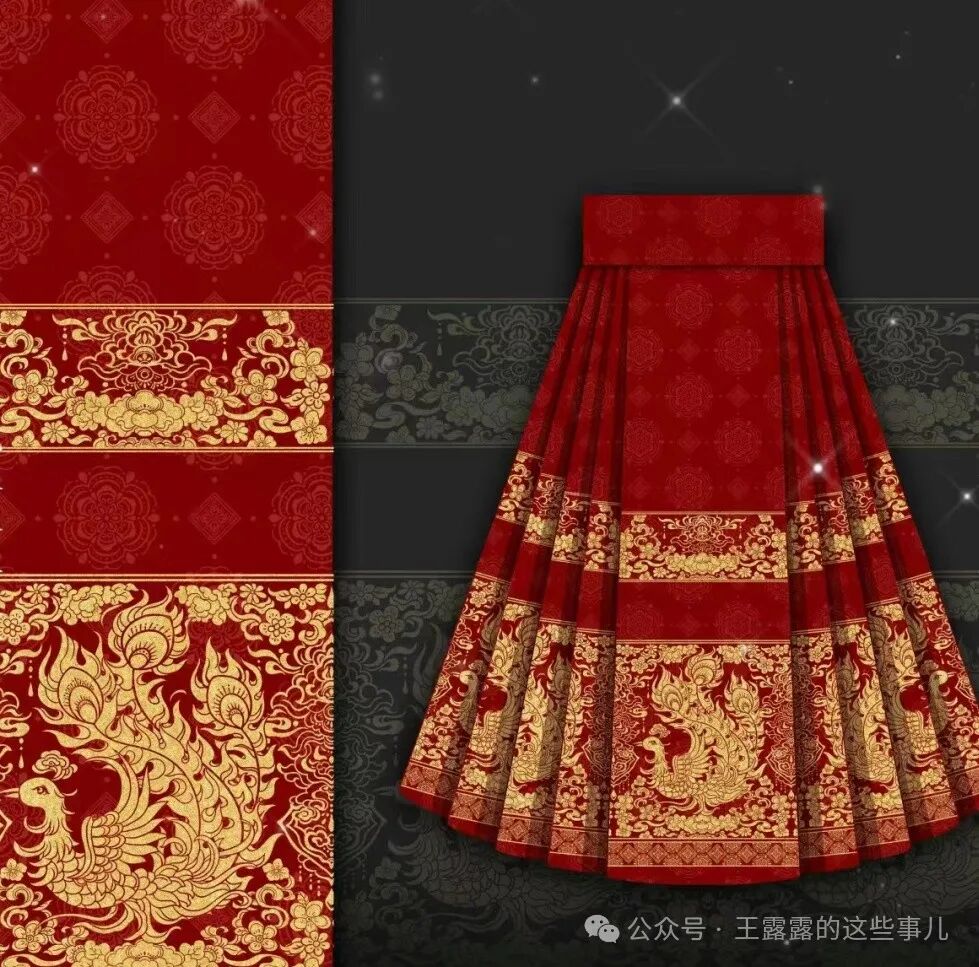 經典的馬面裙上常裝飾有豐富多彩且寓意深遠的花案,以下是一些具有代表性的紋樣及其寓意: