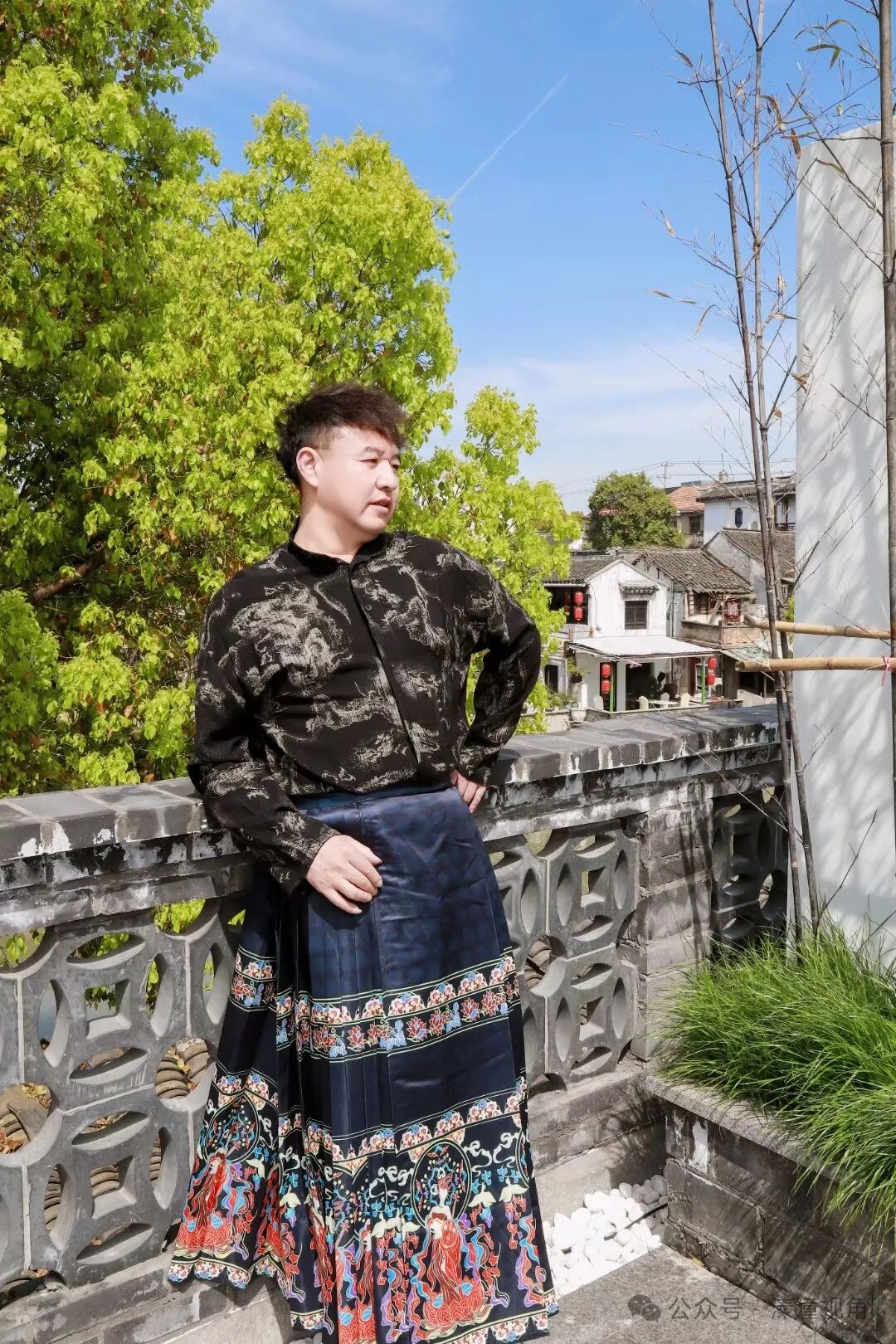 穿馬面裙的少年,頭戴簪花,閑步于小橋流水邊的人家,構成了一幅和諧而古典的畫面。這一景象不僅體現了中國傳統文化的傳承,更映射出一種獨特的東方韻味。馬面裙作為傳統服飾的代表,與簪花相映成趣,展現了中華文化的精致與深邃,同時也表達了對歷史與民族精神的尊重與傳承。這樣的文化魅力,不僅令人賞心悅目,更讓人感受到中華文明的源遠流長和獨特風情。