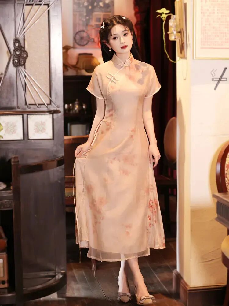 【3天發貨】2024新款春夏改良年輕款優雅氣質蝴蝶花紋復古民國旗袍LSB 2616