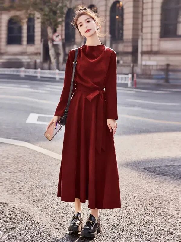 2024春季新款時尚潮流優雅氣質大擺裙系帶長款時尚連衣裙 XSILU2502