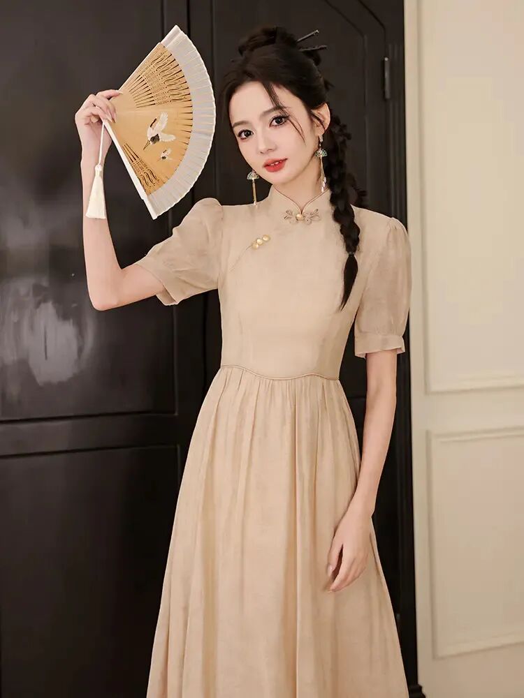 【3天發貨】2024夏季新款日常可穿復古民國風素雅顯白新中式旗袍LBS2624