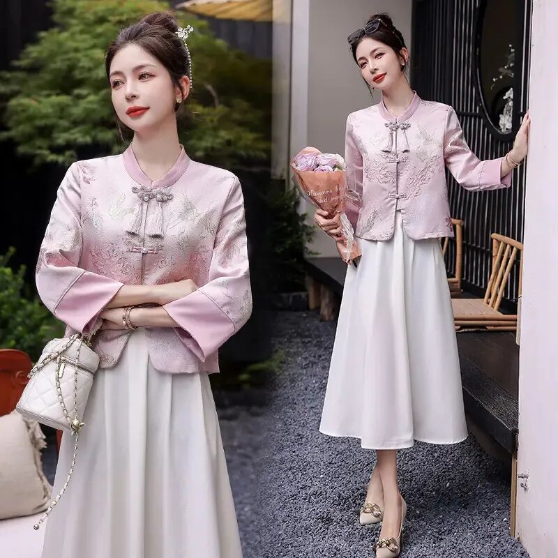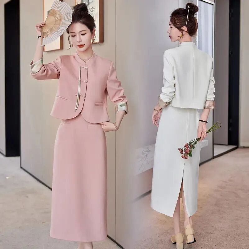 2024年春季新款新中式旗袍高級感外套+半身裙兩件套裝裙MYL2329